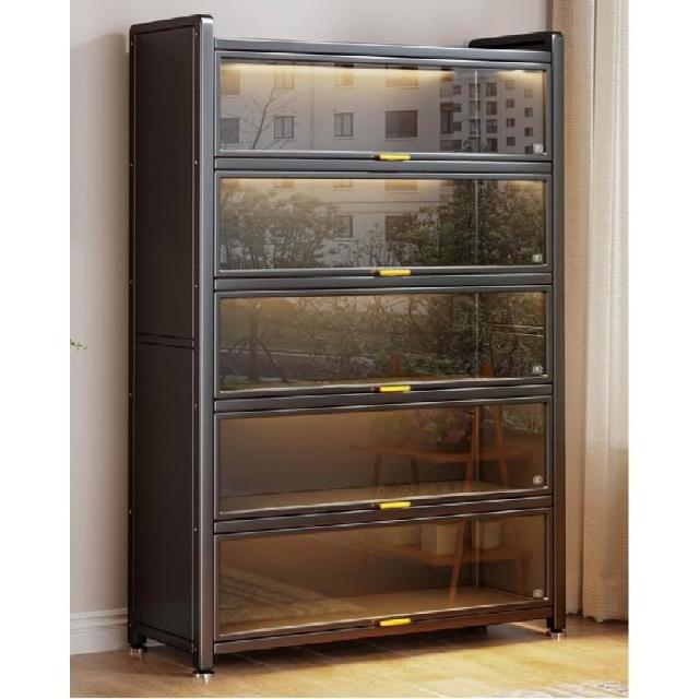 ✨新品下殺✨【防塵防潮】手辦展示櫃玻璃門家用 潮玩陳列櫃 盲盒收納櫃 鐵皮書櫃 可調節層板+燈帶 輕