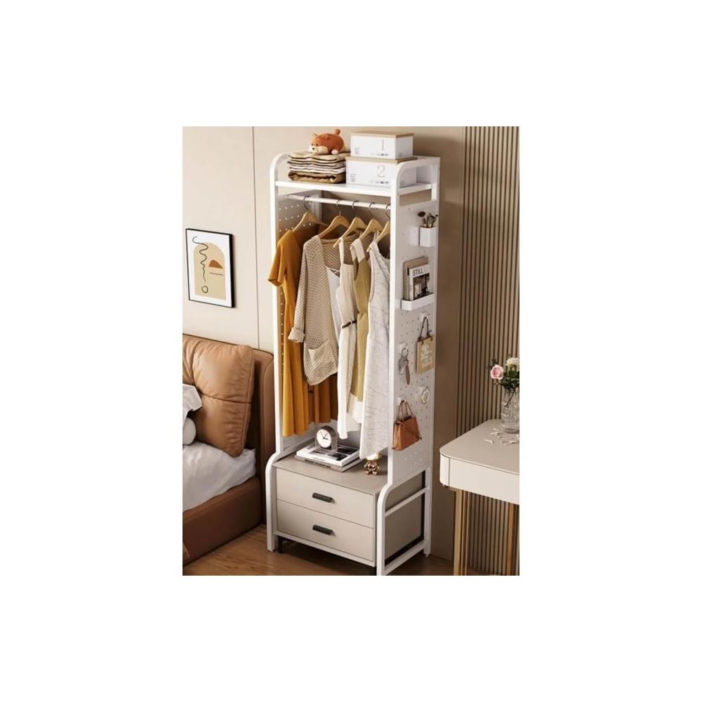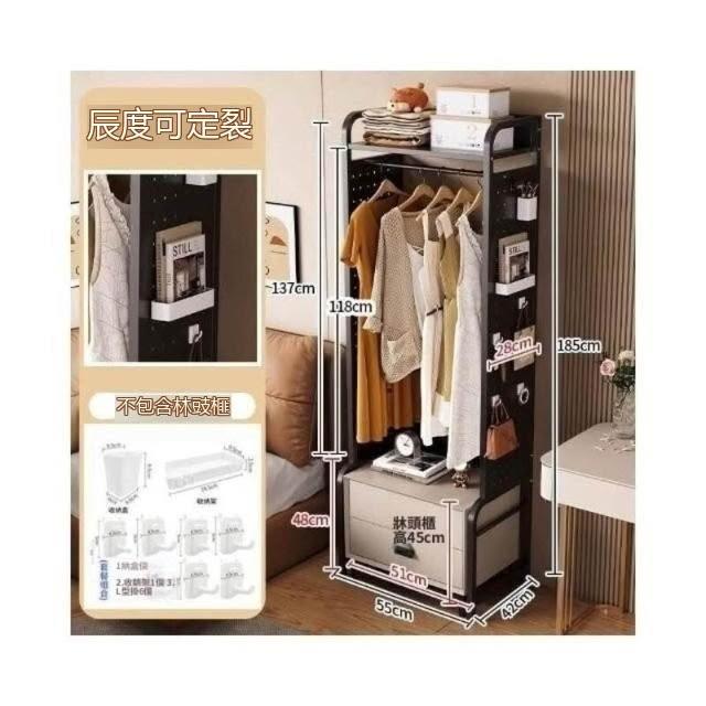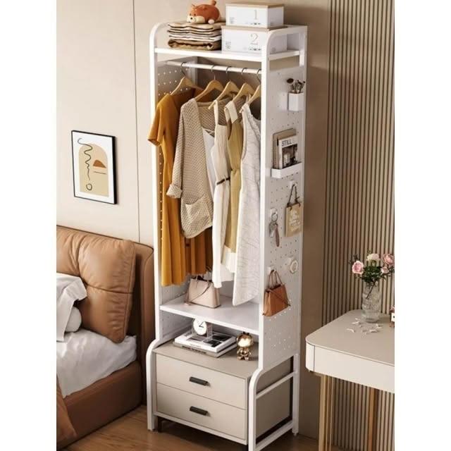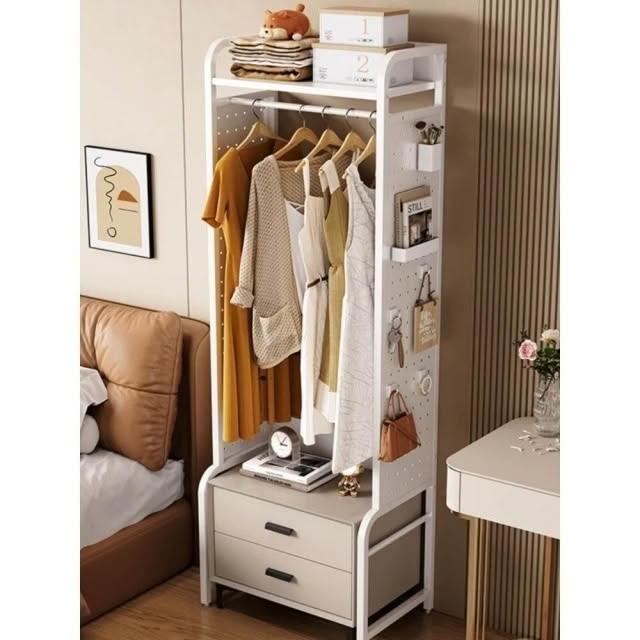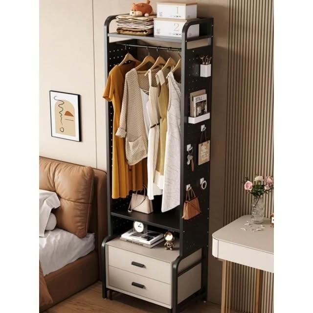 洞洞板鐵藝衣帽架落地一體臥室家用床頭櫃上方新款掛衣架置物架