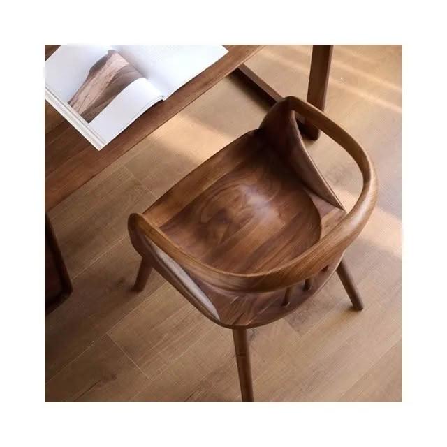 北歐實木餐椅家用靠背椅胡桃簡約餐廳餐桌椅帶扶手茶桌主人椅