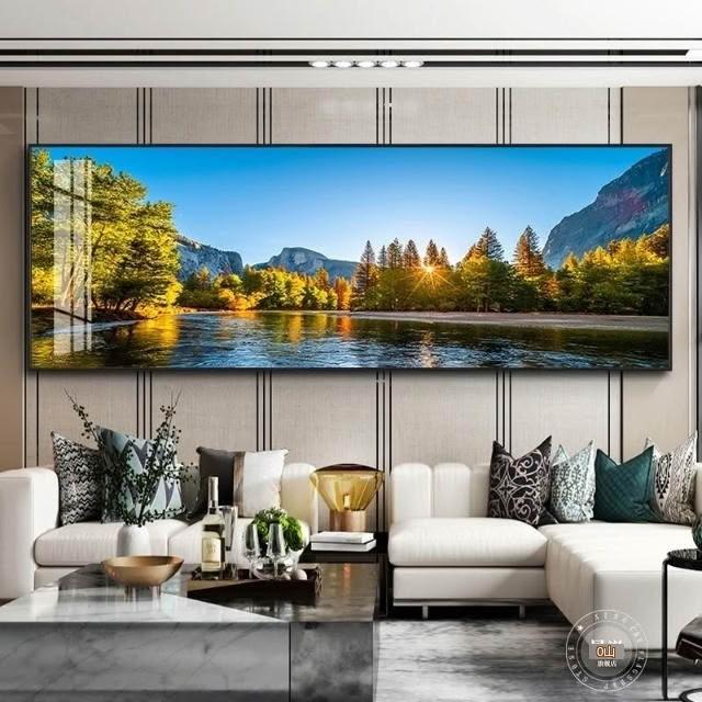 簡約現代晶瓷畫 裝飾畫客廳沙發背景牆掛畫 風景山水壁畫大幅 有框畫 22921696318
