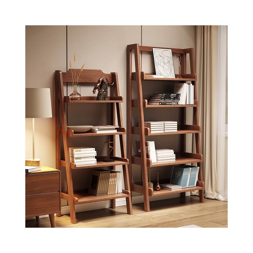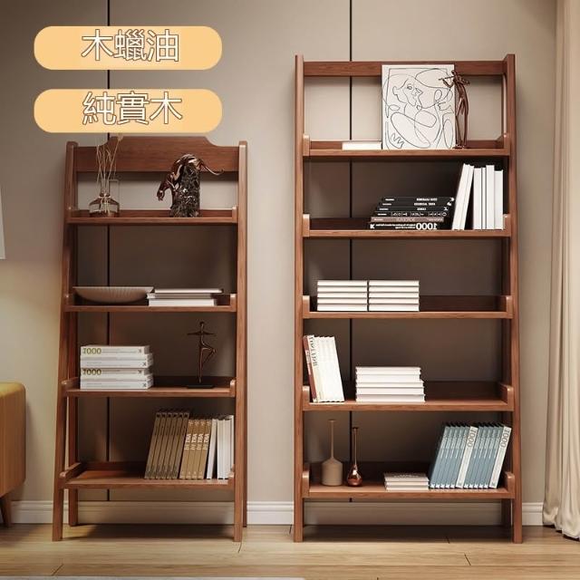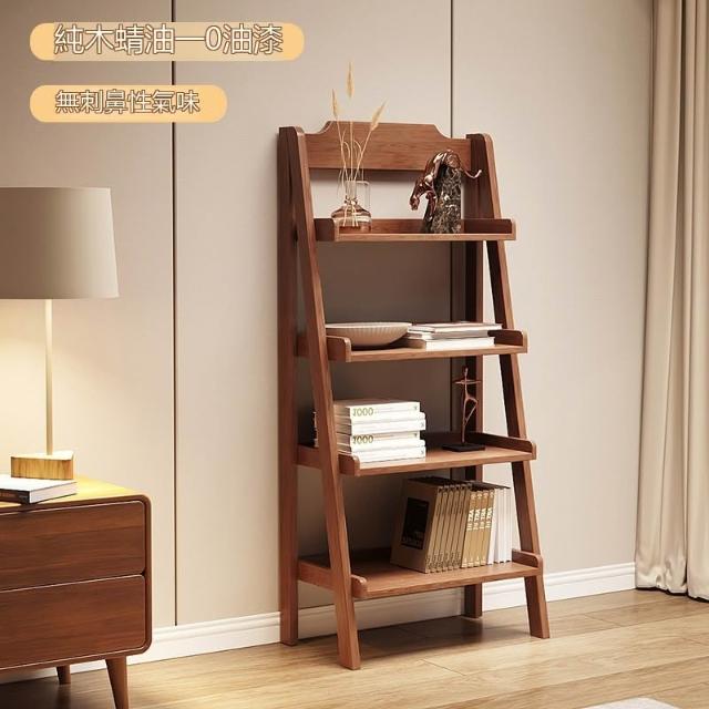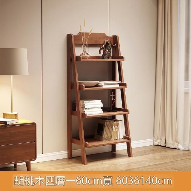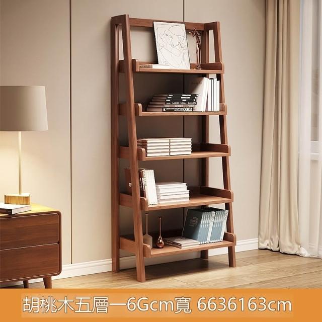 書架 實木書架 北欧胡桃实木书架落地简约梯形客厅收纳置物架阳台花架储物小书柜