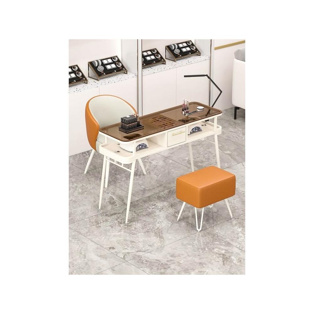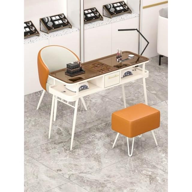 特惠明泰隆玻璃美甲桌 嵌入式吸塵器修甲台桌 美甲椅套 輕奢簡約美甲店專用桌 美甲桌 美甲椅