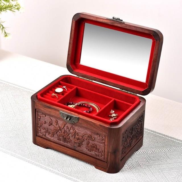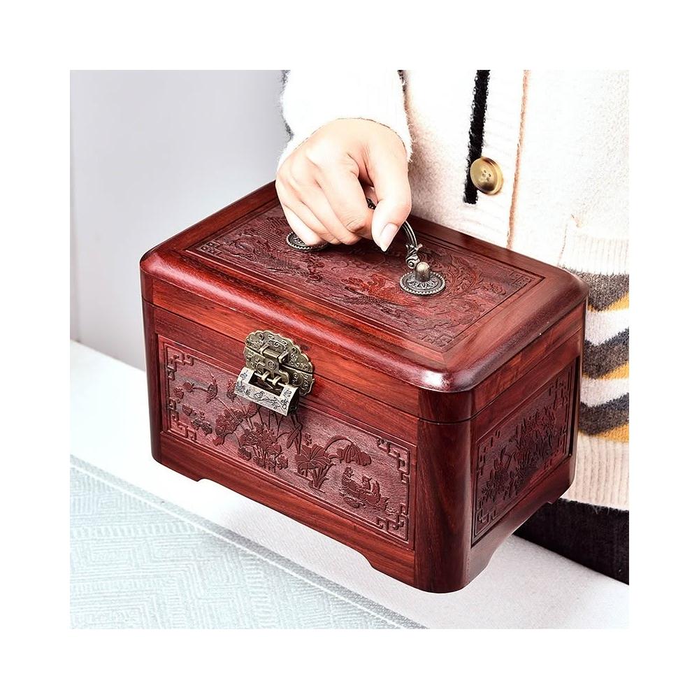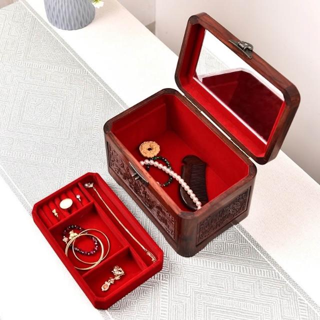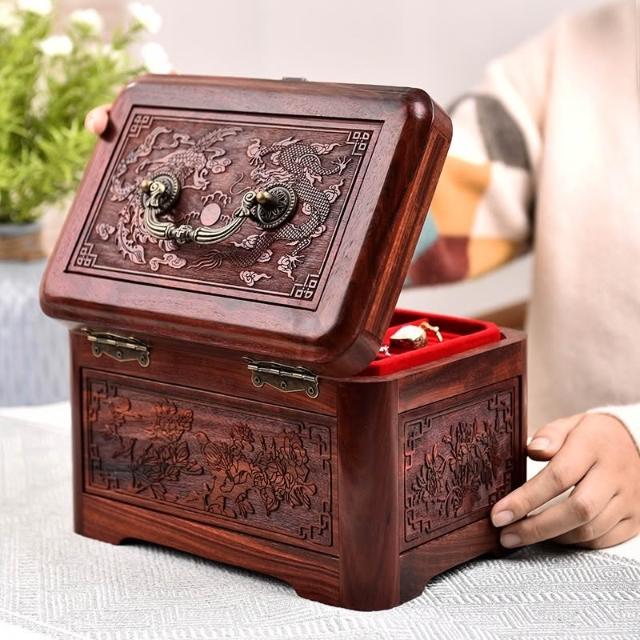 💥 紫檀實木收納盒 結婚禮品盒 陪嫁飾品盒 紅木復古手珠寶整理盒 高端帶鎖珠寶首飾盒