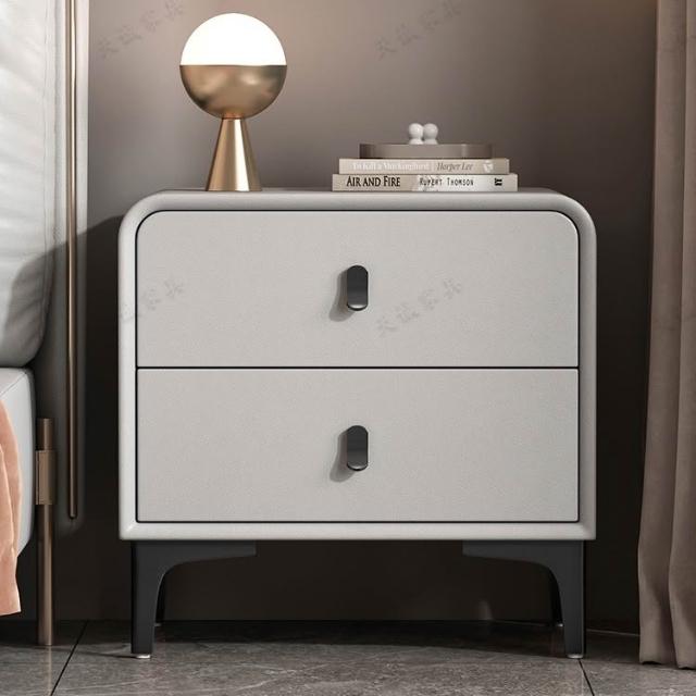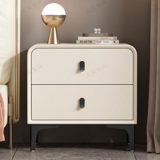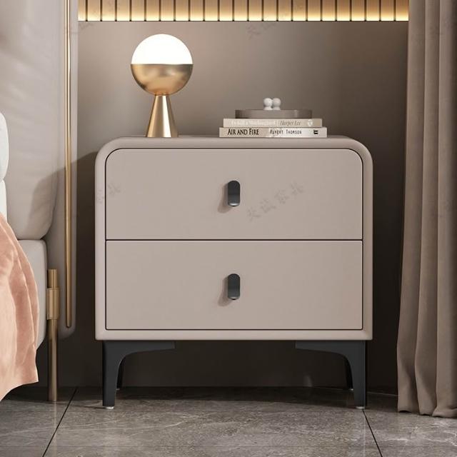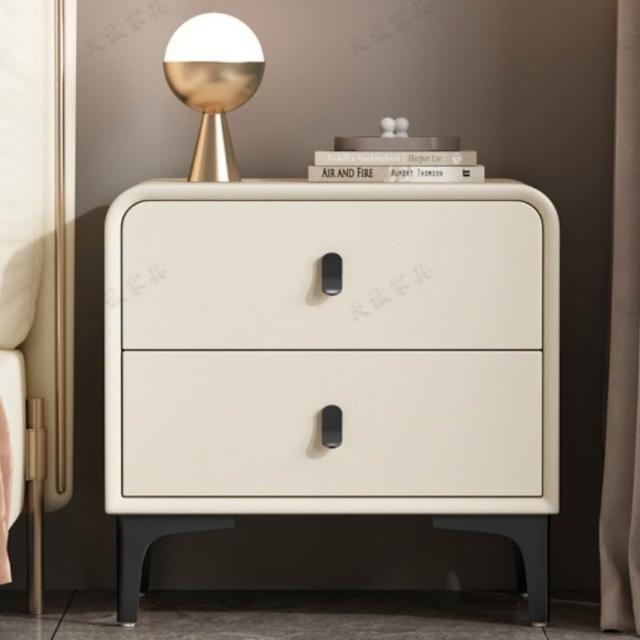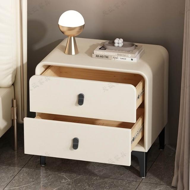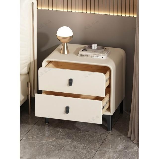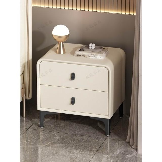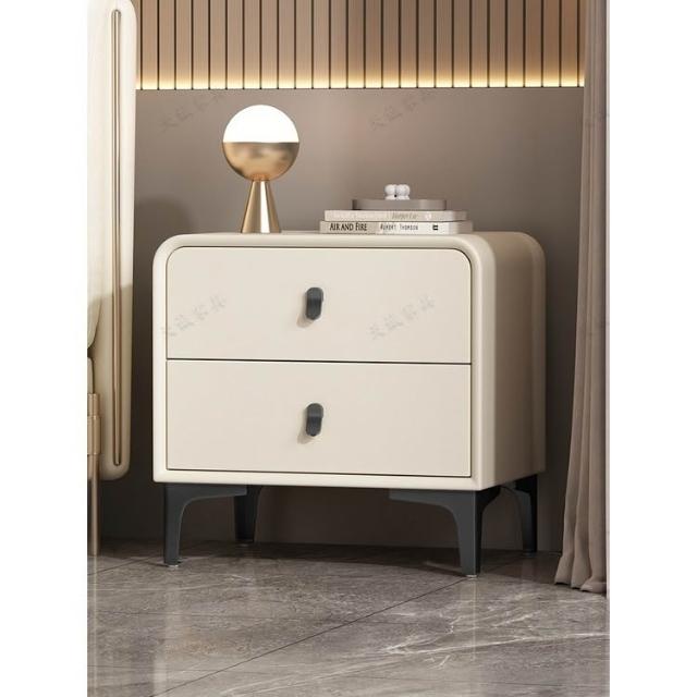 奶油風現代簡約實木床頭櫃輕奢高級感圓型皮質網紅卧室床邊收納櫃