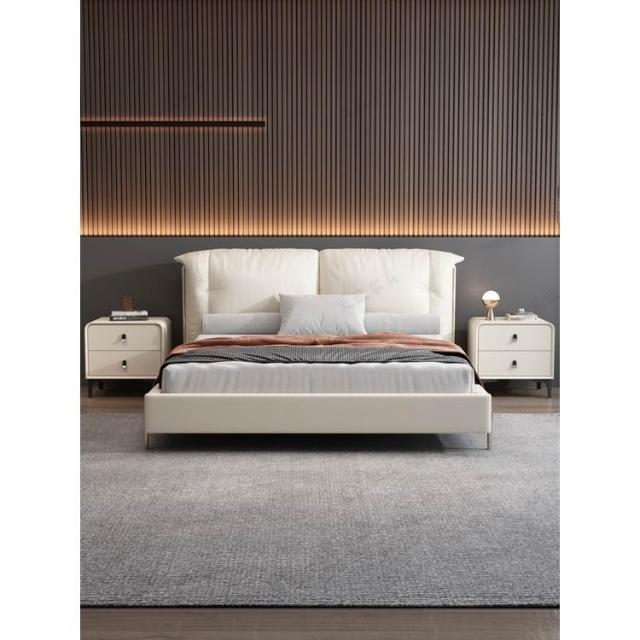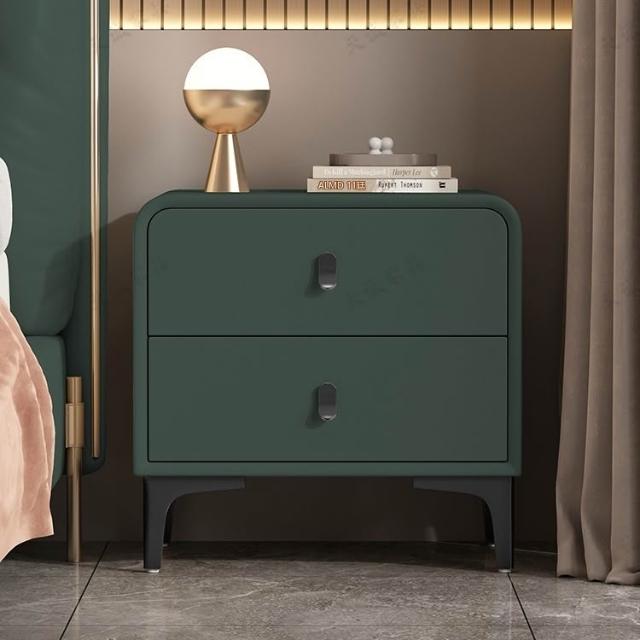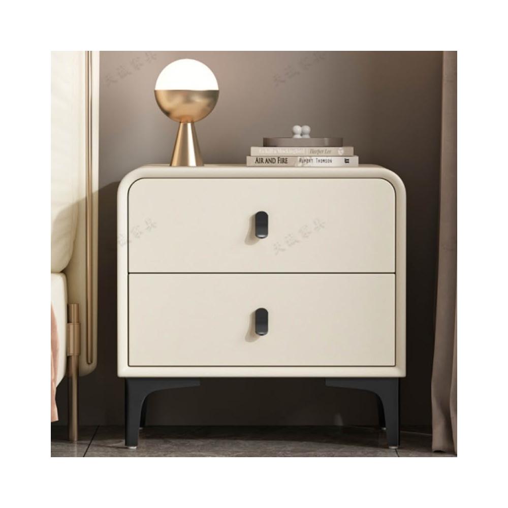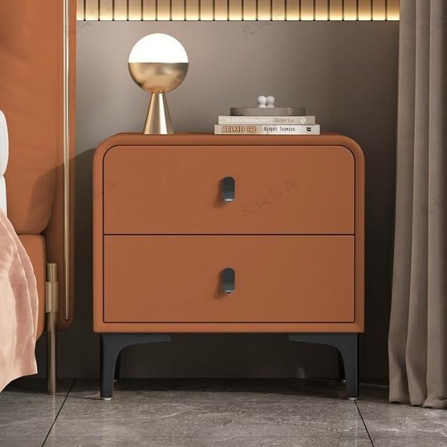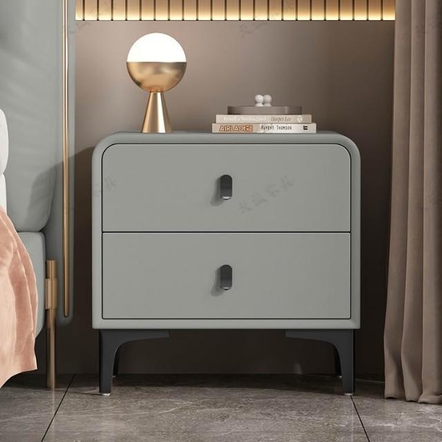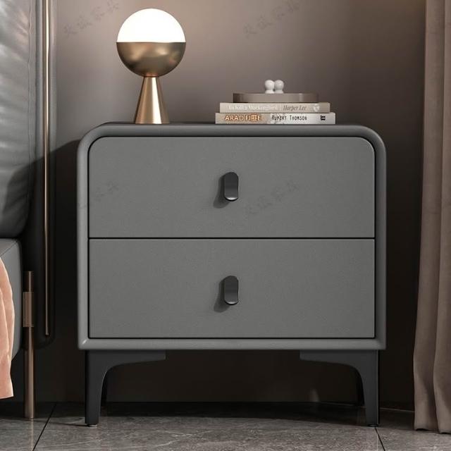 奶油風現代簡約實木床頭櫃輕奢高級感圓型皮質網紅卧室床邊收納櫃