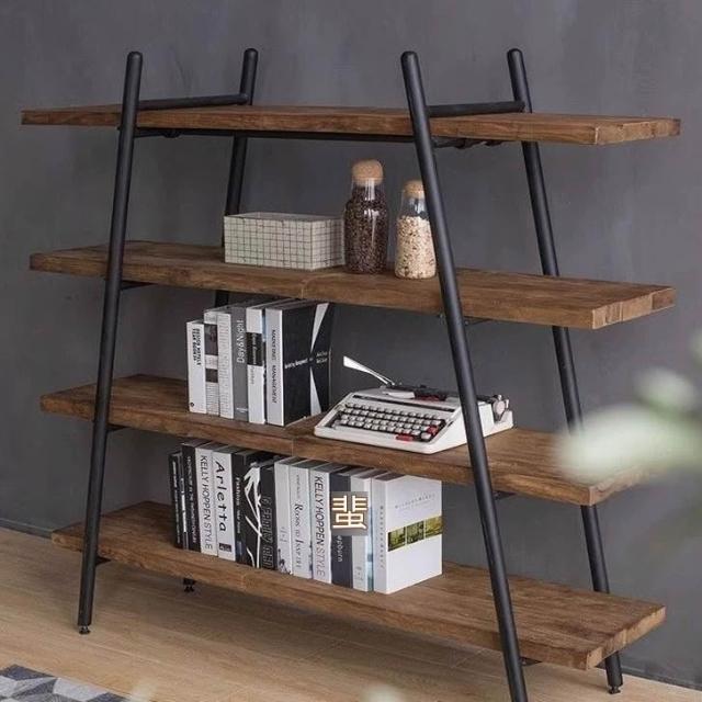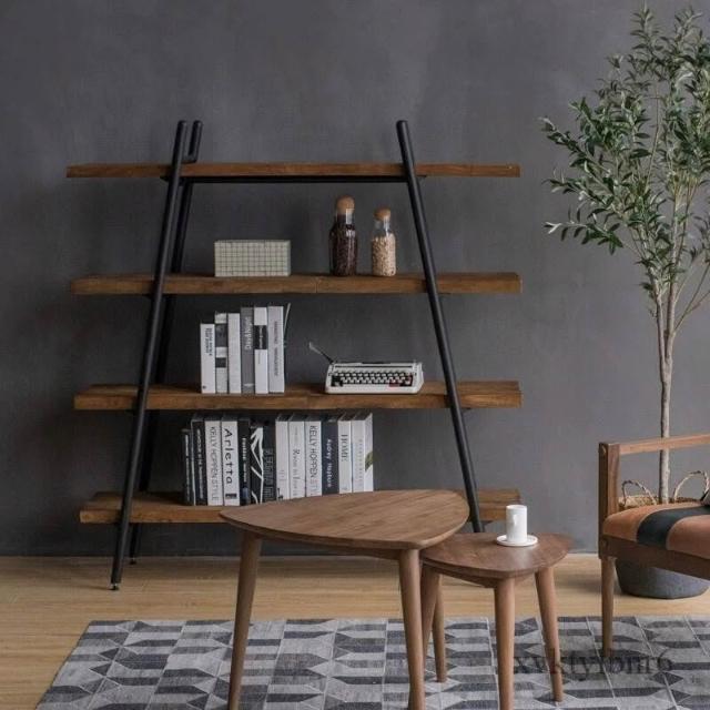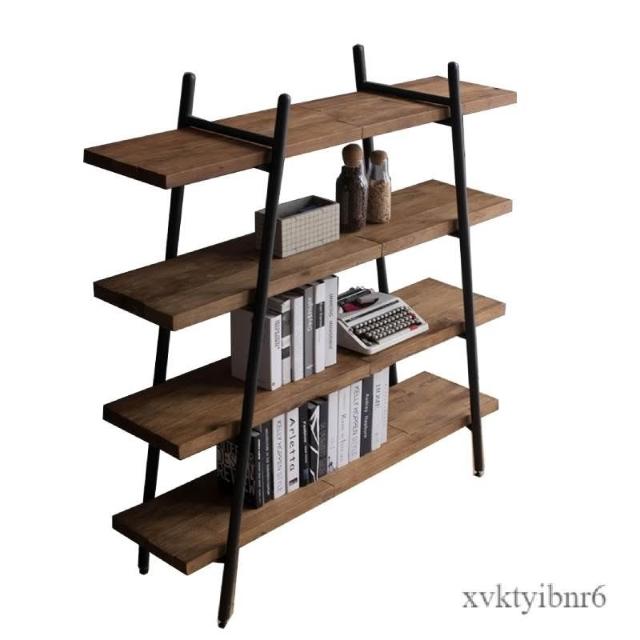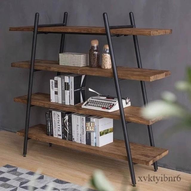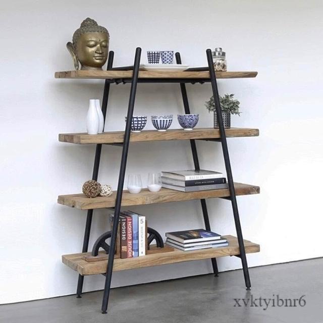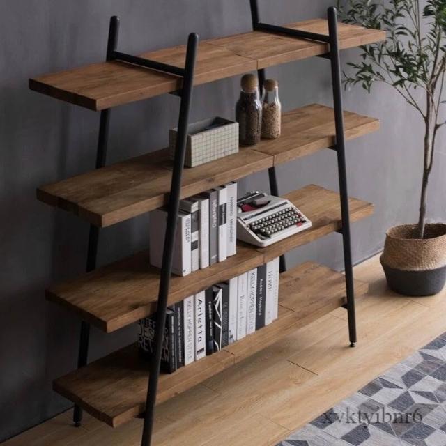 ✨廠家直銷✨原木書架 鐵藝置物架 落地靠墻收納架 簡約實木客廳置物架 多層一字板收納展示架子