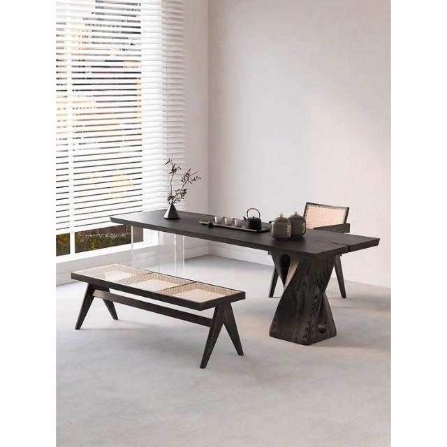 廠家直銷侘寂風白蠟木亞克力實木懸浮餐桌簡約原木大板桌家用創意茶台茶桌實木亞克力懸浮餐桌家用島台簡