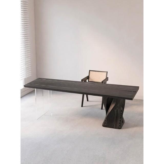 廠家直銷侘寂風白蠟木亞克力實木懸浮餐桌簡約原木大板桌家用創意茶台茶桌實木亞克力懸浮餐桌家用島台簡