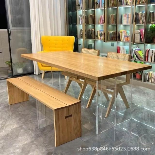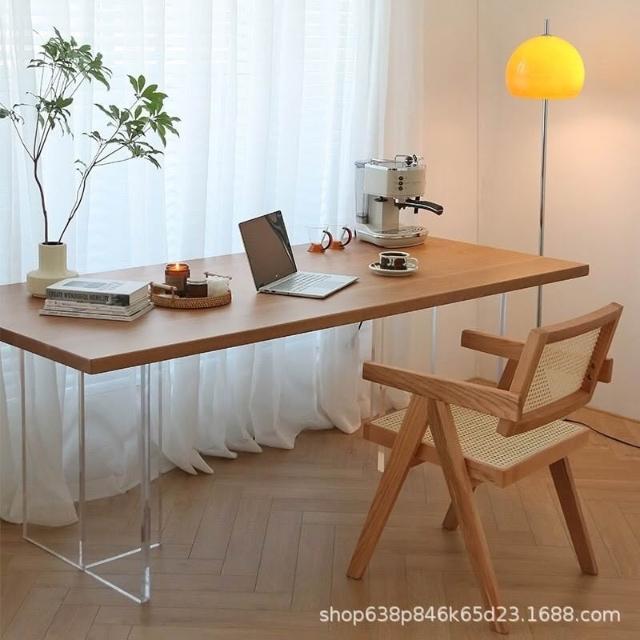 北歐亞克力懸浮餐桌 設計師創意辦公書桌 實木電腦桌 簡約原木工作台 餐桌 會客桌 大餐桌 吃飯桌 北