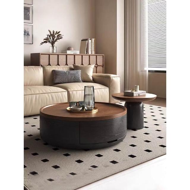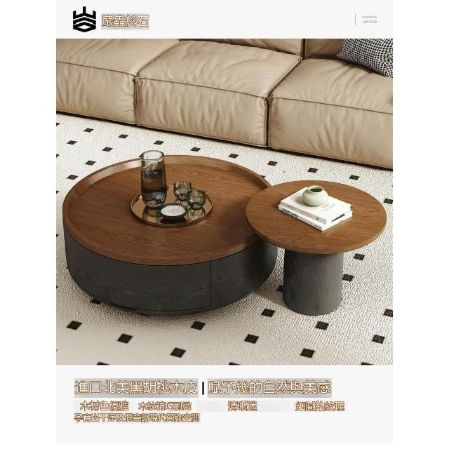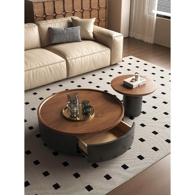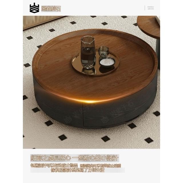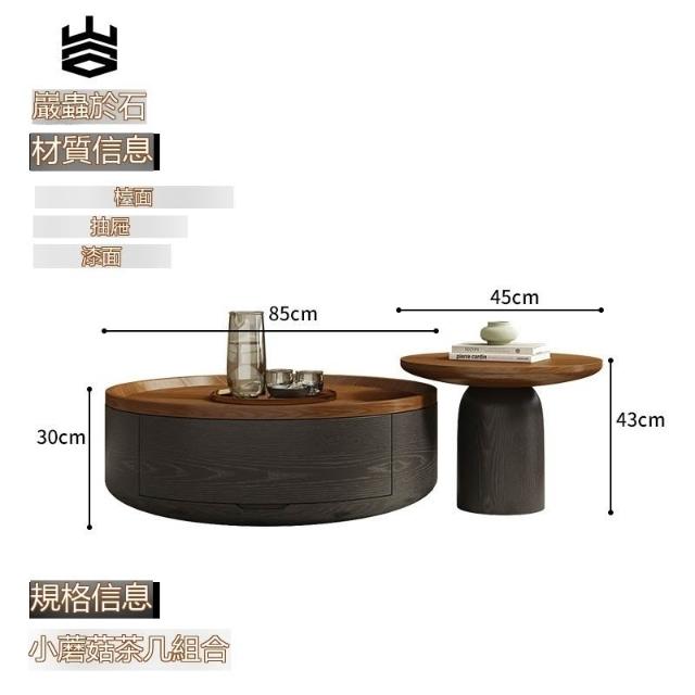 廠家直銷✨中古風茶几 客廳家用實木大小圓形茶几組合 現代簡約小戶型茶几