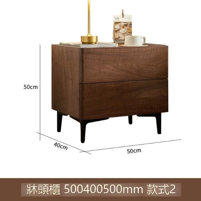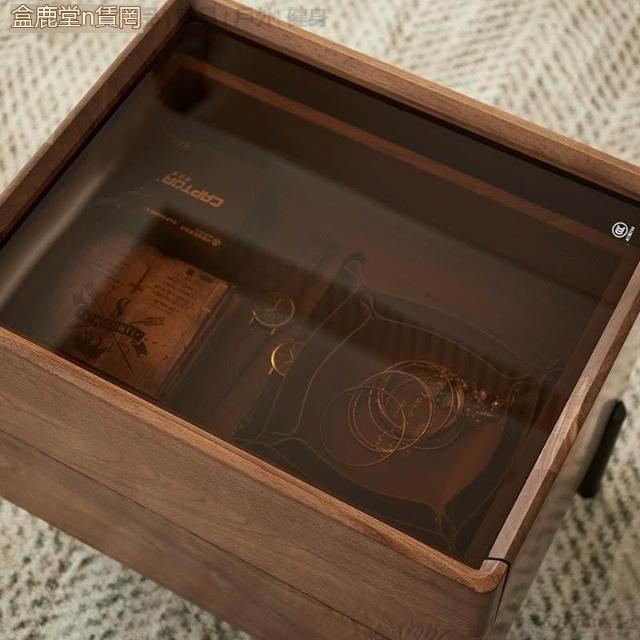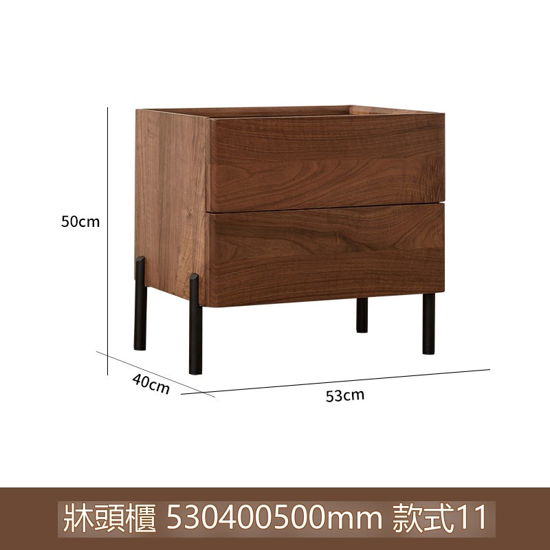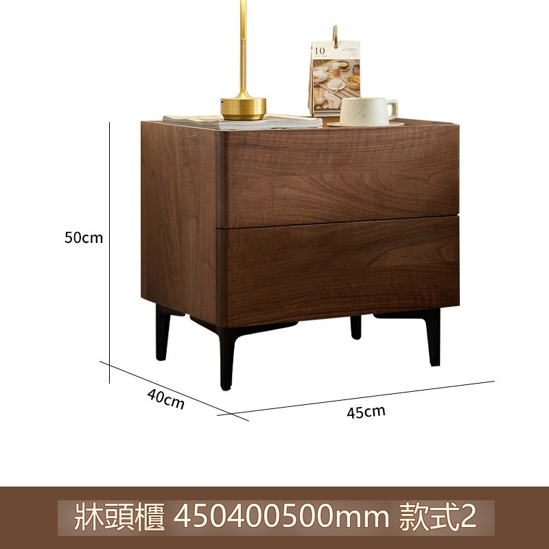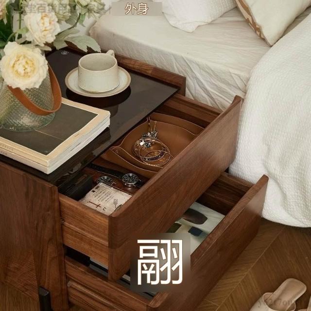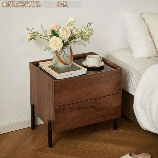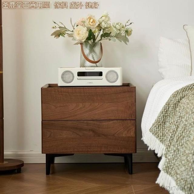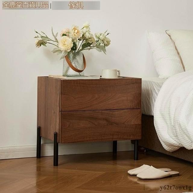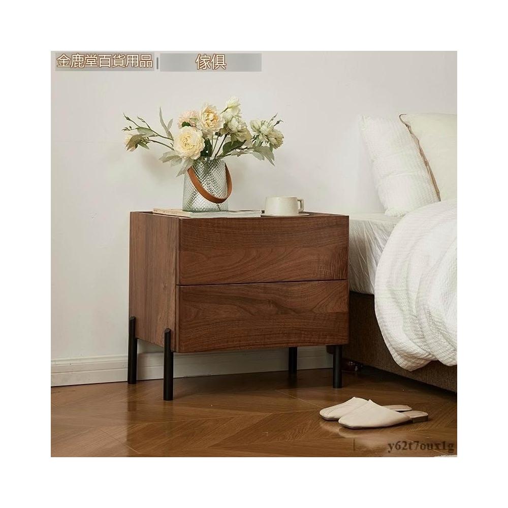 宅配到府黑胡桃木 床頭櫃 簡約 現代全實木床邊櫃臥室抽屜儲物 收納櫃 北歐意式