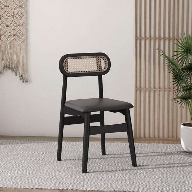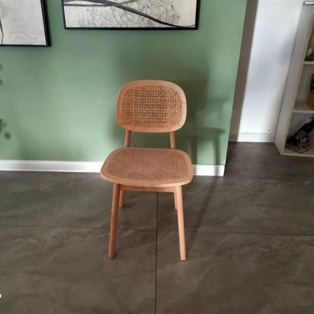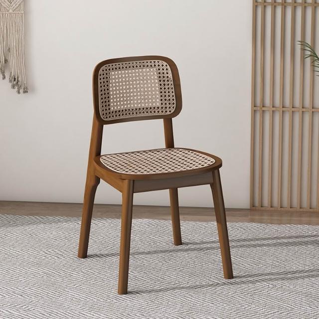 宅配北歐藤編椅 實木餐桌椅 靠背餐椅 中古休閑餐廳椅 家用設計簡約咖啡椅