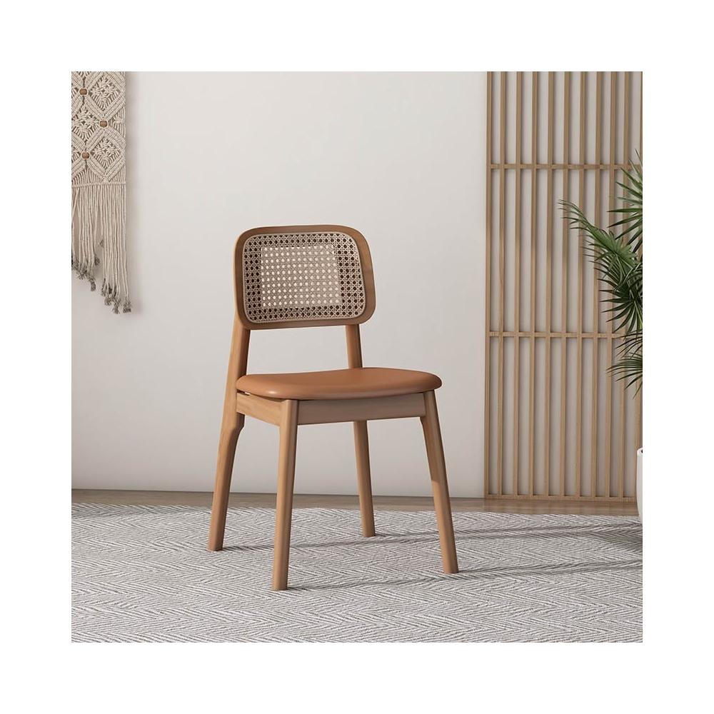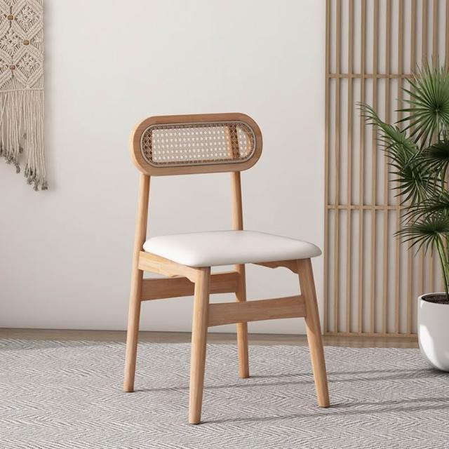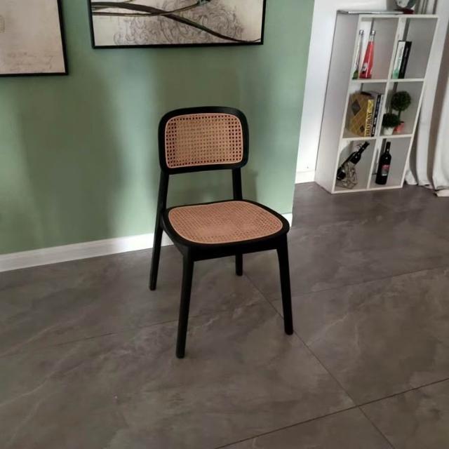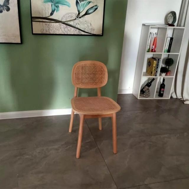 宅配北歐藤編椅 實木餐桌椅 靠背餐椅 中古休閑餐廳椅 家用設計簡約咖啡椅