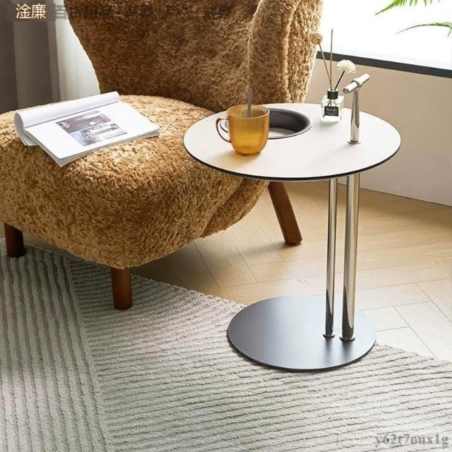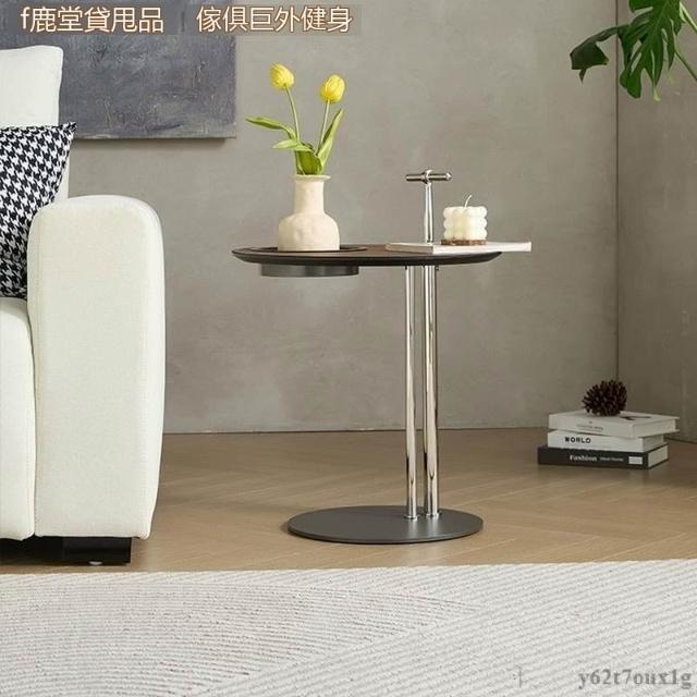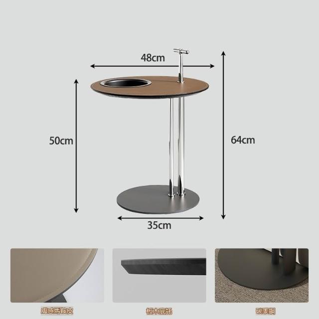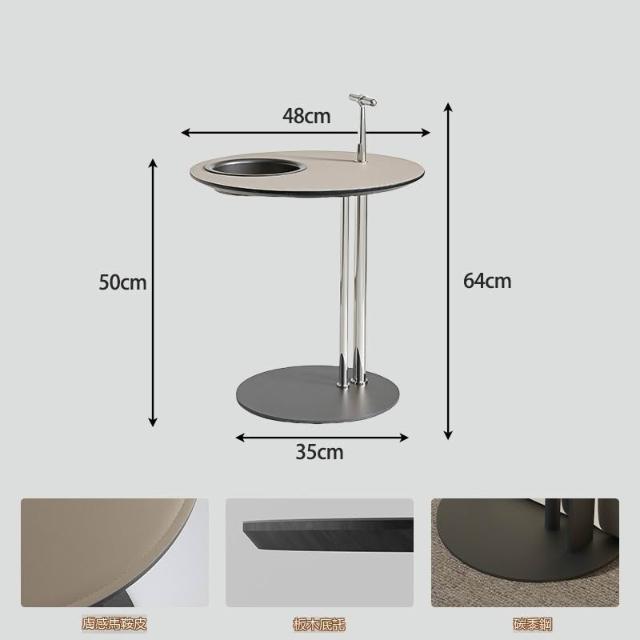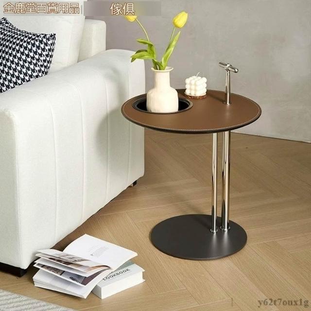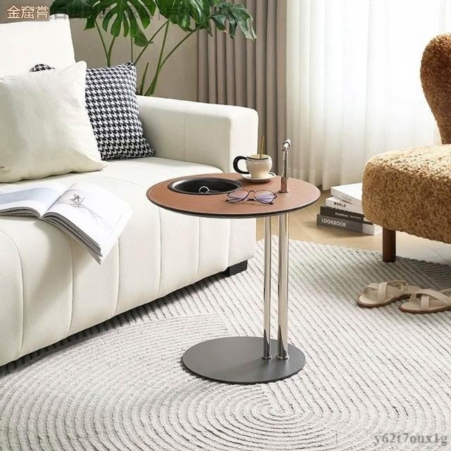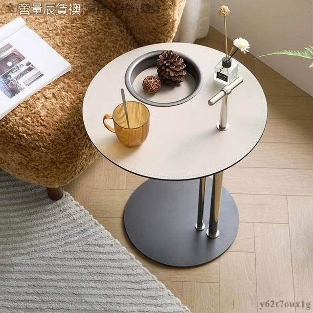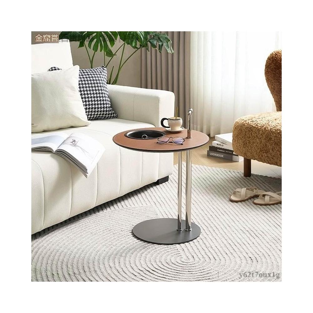 宅配到府馬鞍皮茶幾組合 小戶型極簡設計 不銹鋼異形時尚創意家具 帶儲物圓形邊幾