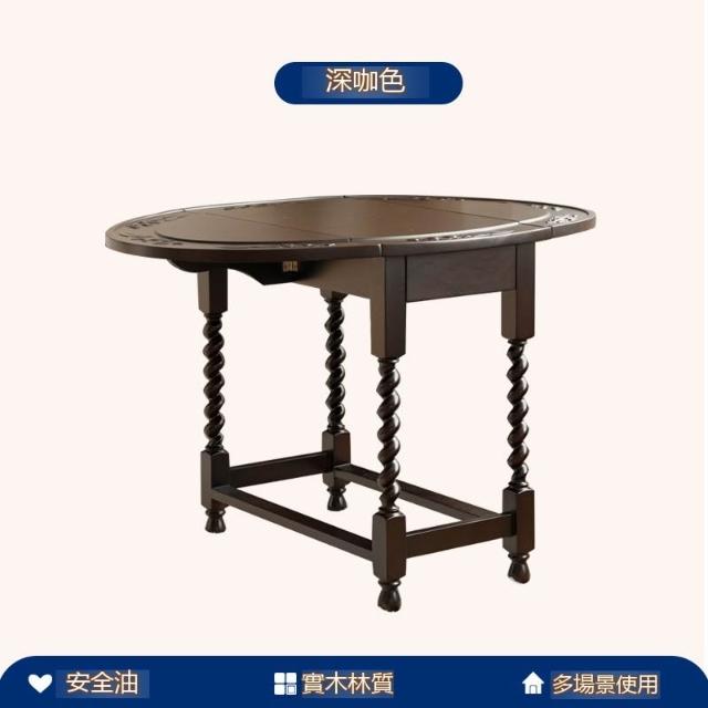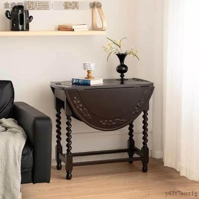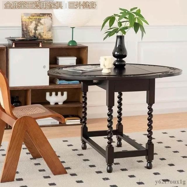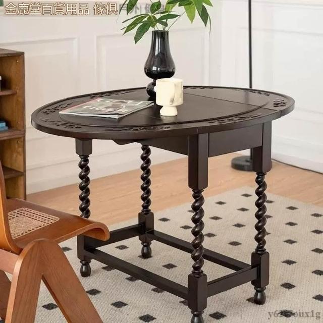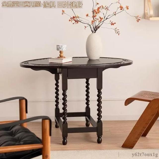 宅配到府法式 復古折疊實木餐桌 家用小戶型 中古橢圓形桌子 新款家具咖啡店