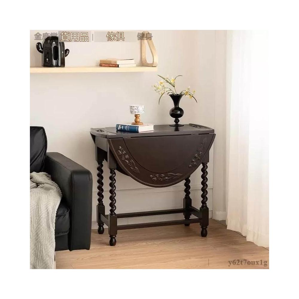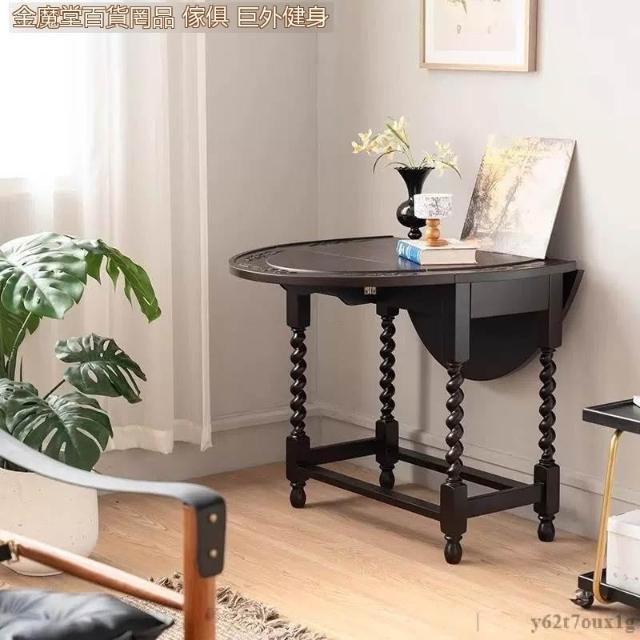 宅配到府法式 復古折疊實木餐桌 家用小戶型 中古橢圓形桌子 新款家具咖啡店