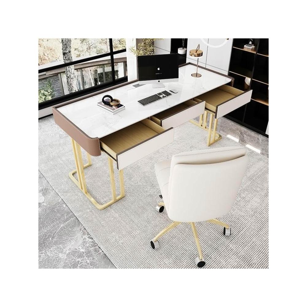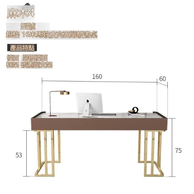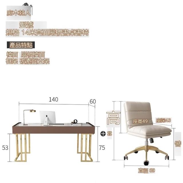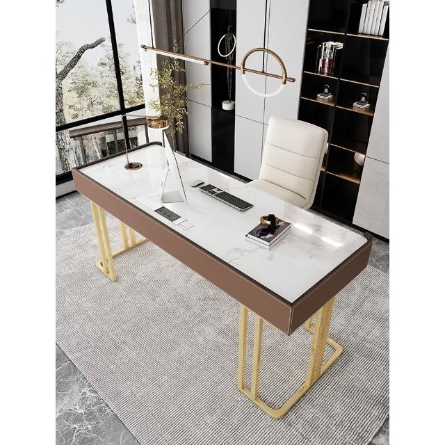 宅配到府意式極簡桌子 家用簡約現代書房桌子 電腦桌子 輕奢岩板寫字台桌椅 馬鞍皮書桌書椅子