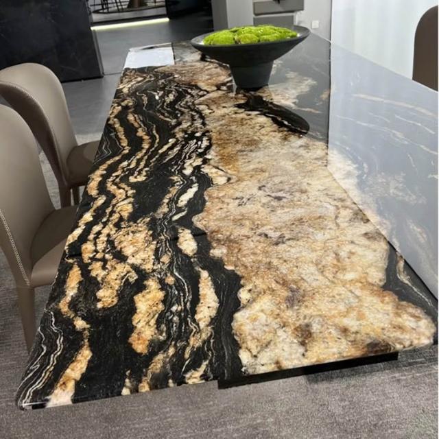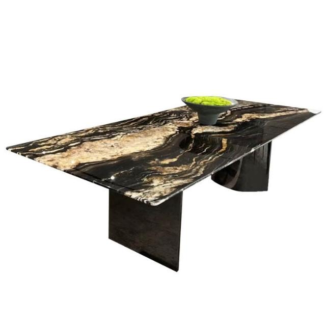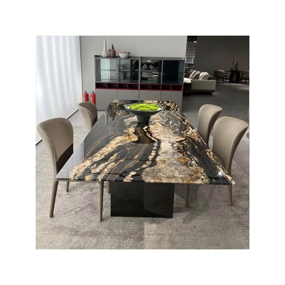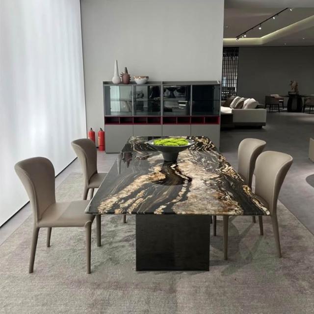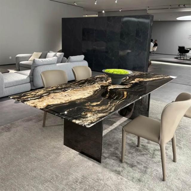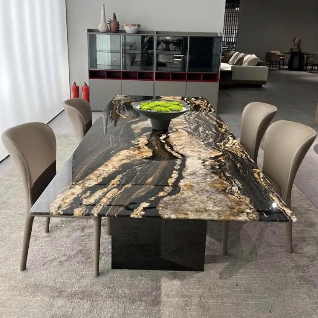 宅配到府進口宇宙金奢石餐桌子 輕奢高端別墅桌子 黃金絲綢桌子 天然大理石桌子 長方形桌子