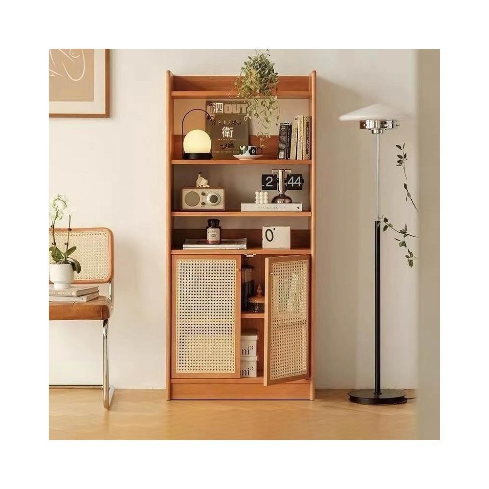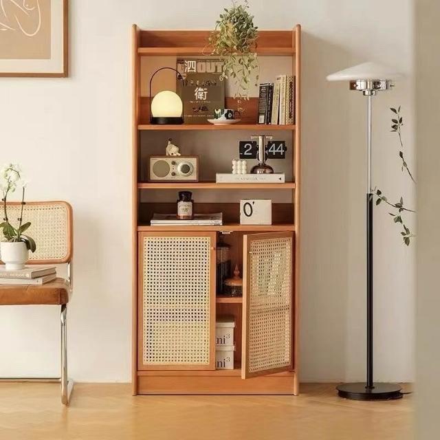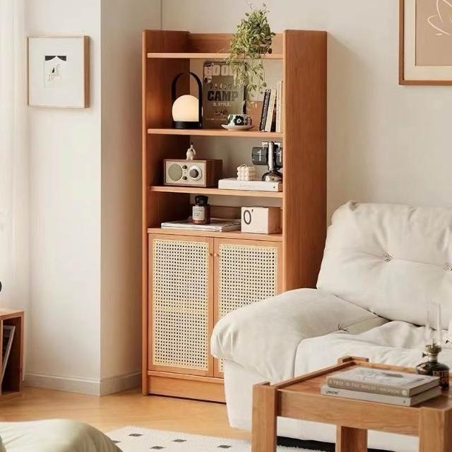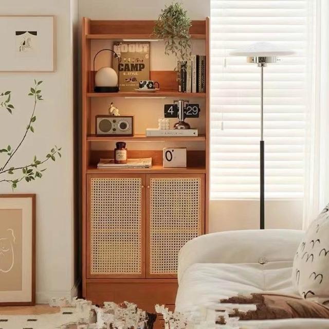 ✨開立✨日式簡約書櫃 家用靠墻置物架 藤編書架 客廳臥室展示櫃 陳列櫃 實收納儲物柜 木收納櫃