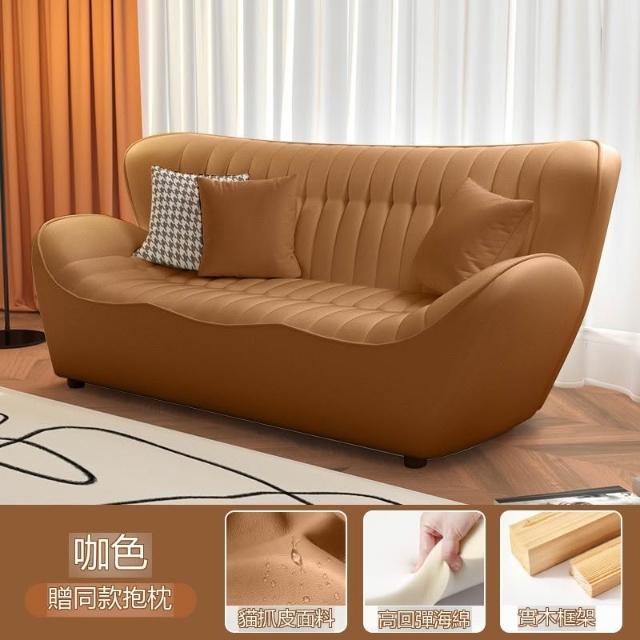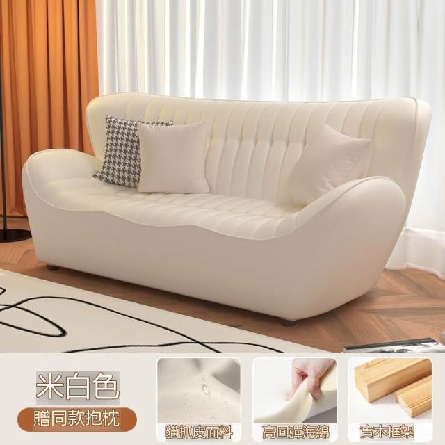 可開🔥意式极简猫抓皮沙发 现代简约小户型沙发 客厅轻奢沙发 北欧奶油风帆船沙发