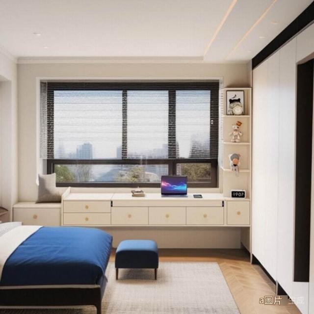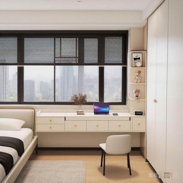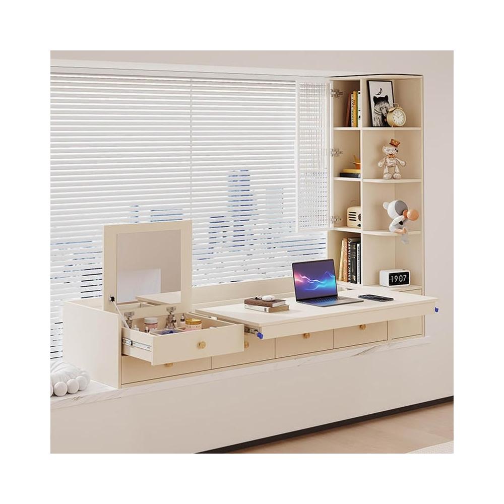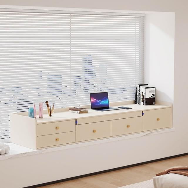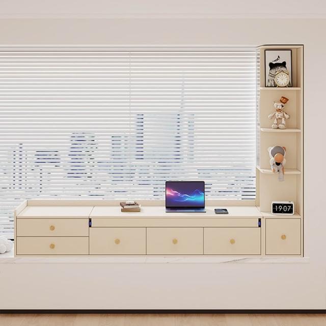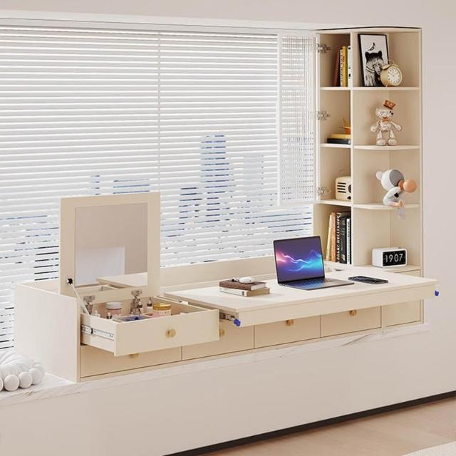 ⭐下殺價⭐奶油风推拉伸缩飘窗书桌柜 梳妆台 一体书柜 电脑桌阳台抽屉收纳定制
