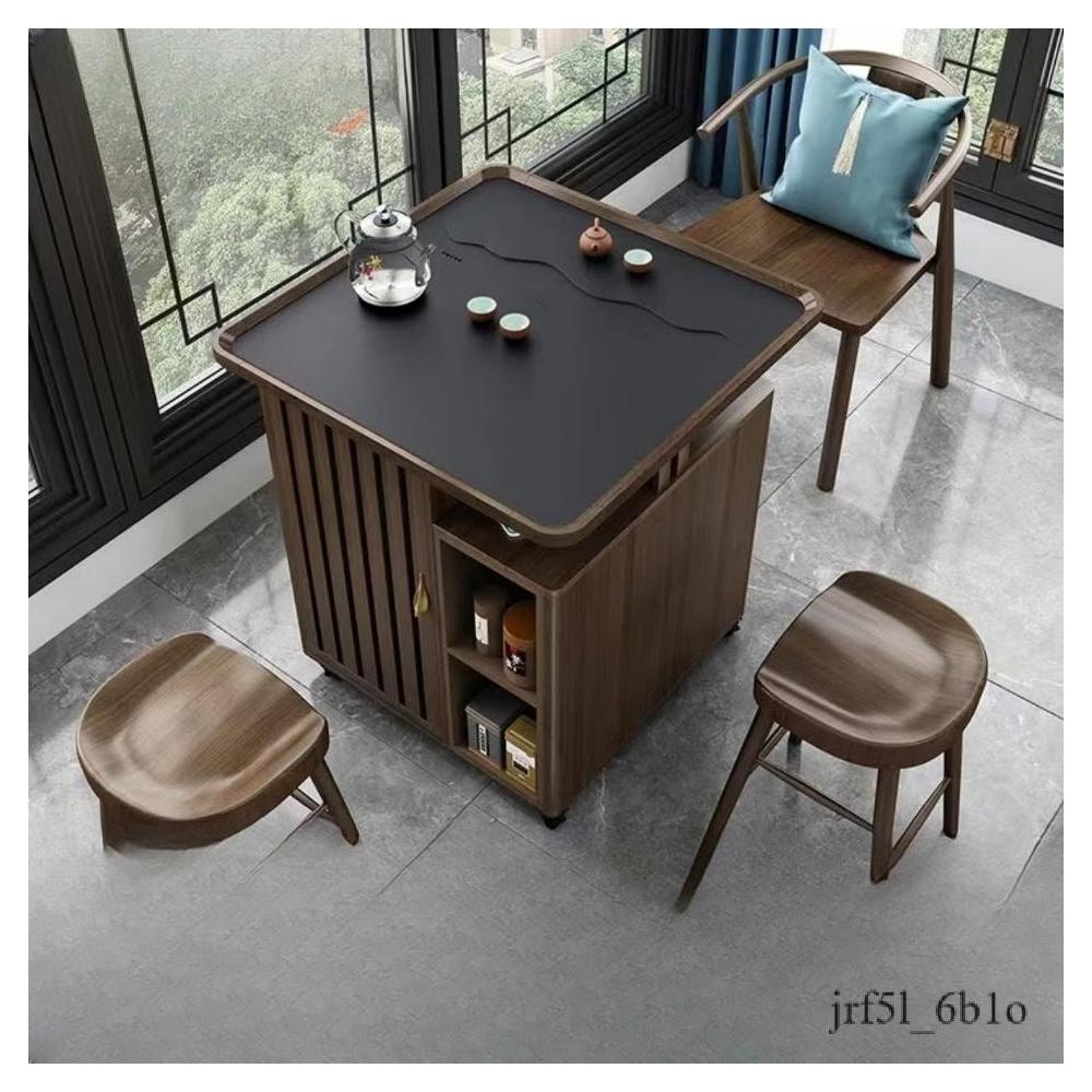 ✨廠家直銷新中式陽台茶桌 小戶型小茶台 家用實木岩板桌子 移動帶輪茶車茶桌椅組合