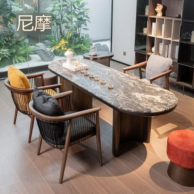 售後無憂🌟尼摩新款輕奢高級旋轉真皮實木主人椅黑胡桃茶椅中古扶手靠背餐椅