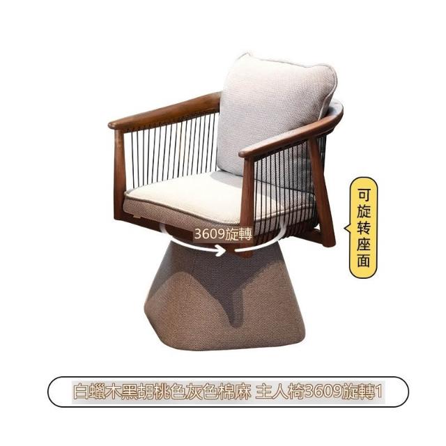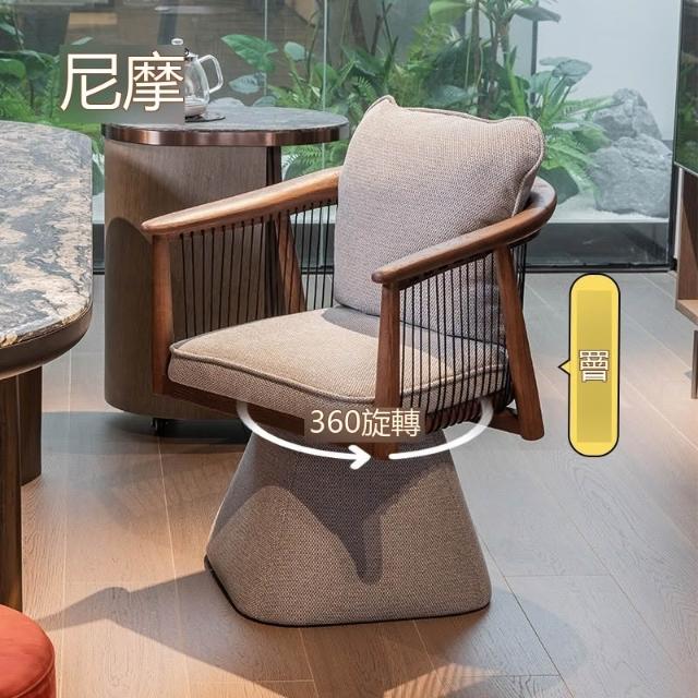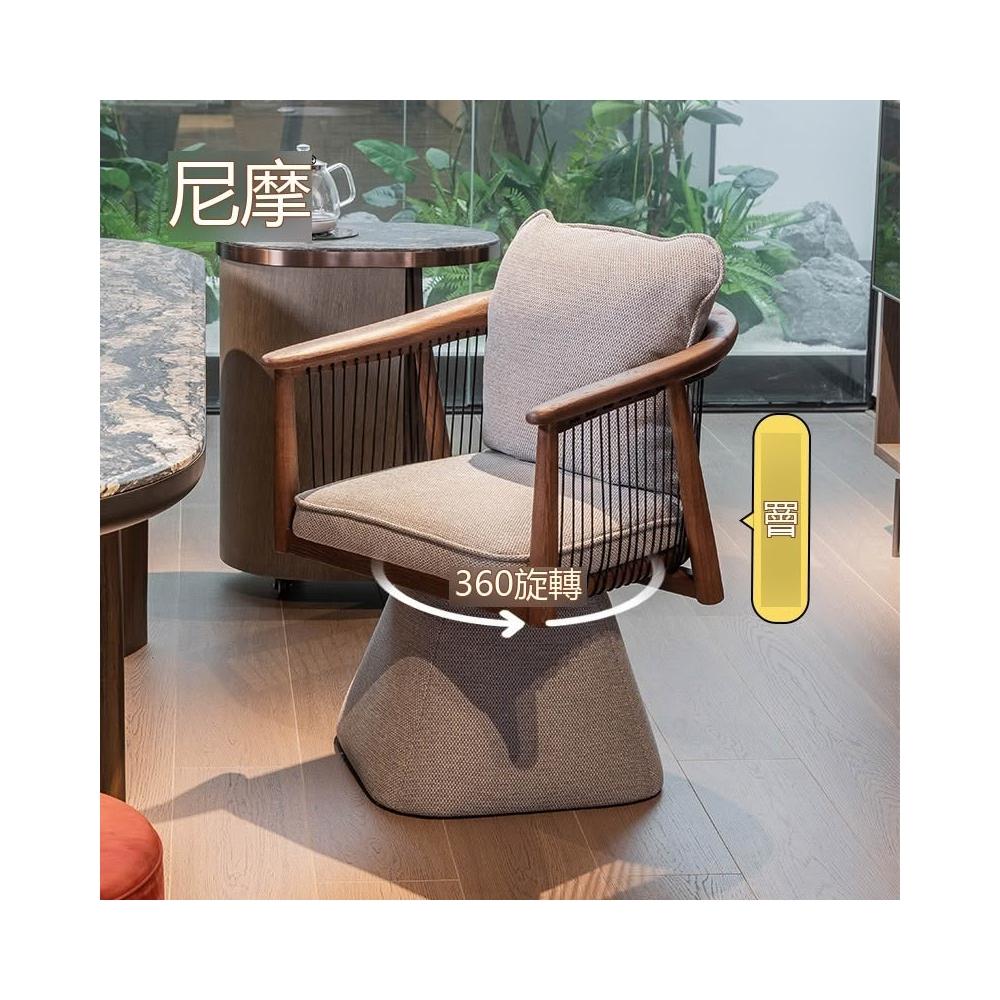 售後無憂🌟尼摩新款輕奢高級旋轉真皮實木主人椅黑胡桃茶椅中古扶手靠背餐椅