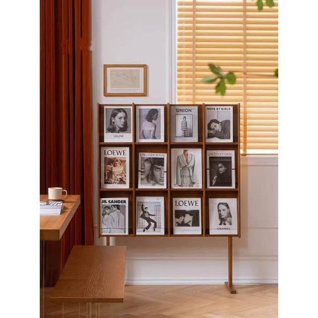 含稅/ 舒曼雜誌架中古實木閱讀書架日式展示架創意亞克力落地報刊架子