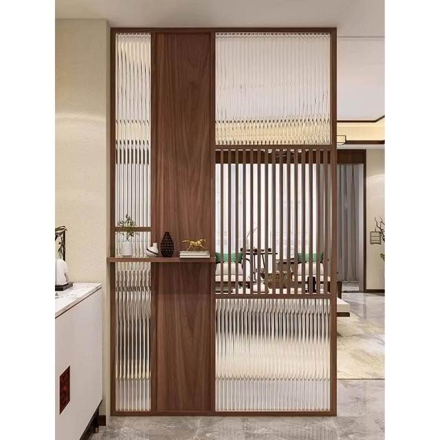 長虹玻璃實木屏風隔斷客廳入戶玄關辦公室正對門遮擋格柵假墻裝飾