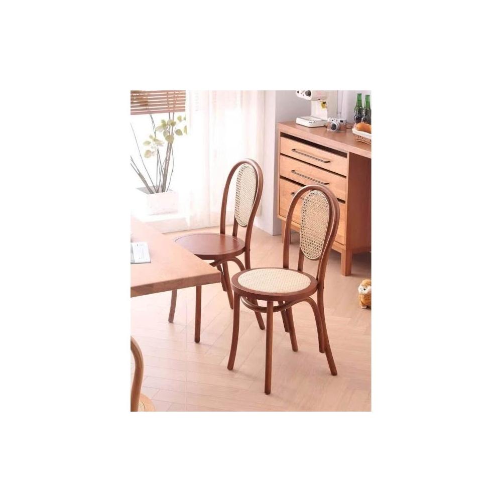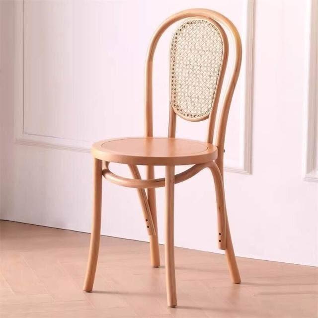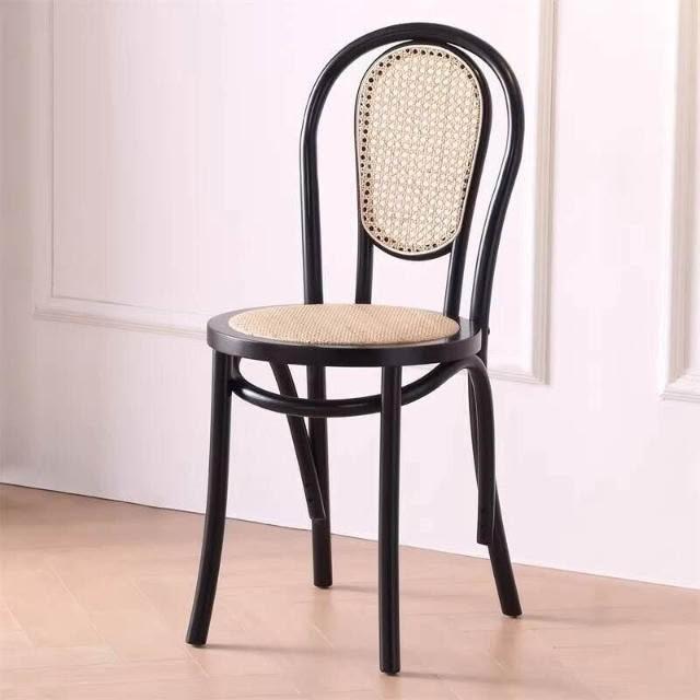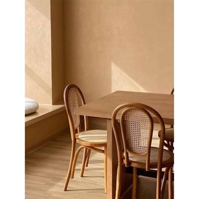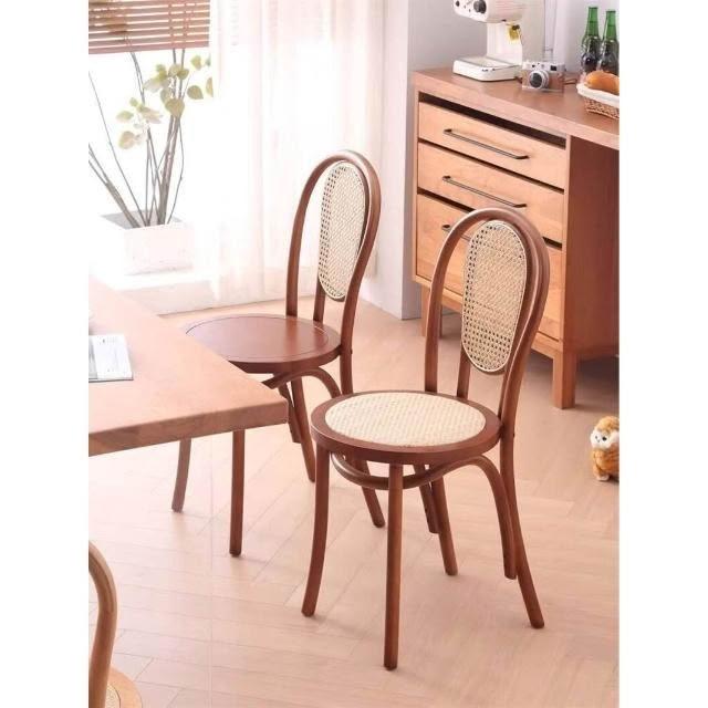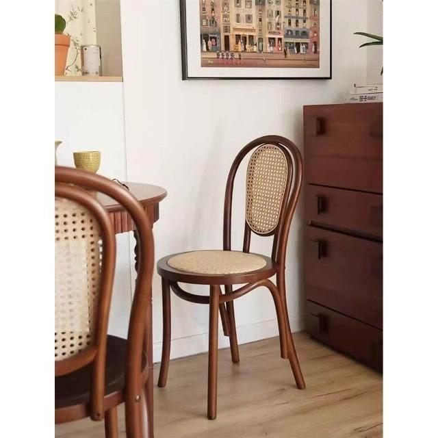 北歐藤編復古實木家用餐椅索耐特民宿咖啡廳餐桌椅詫寂中古風椅子