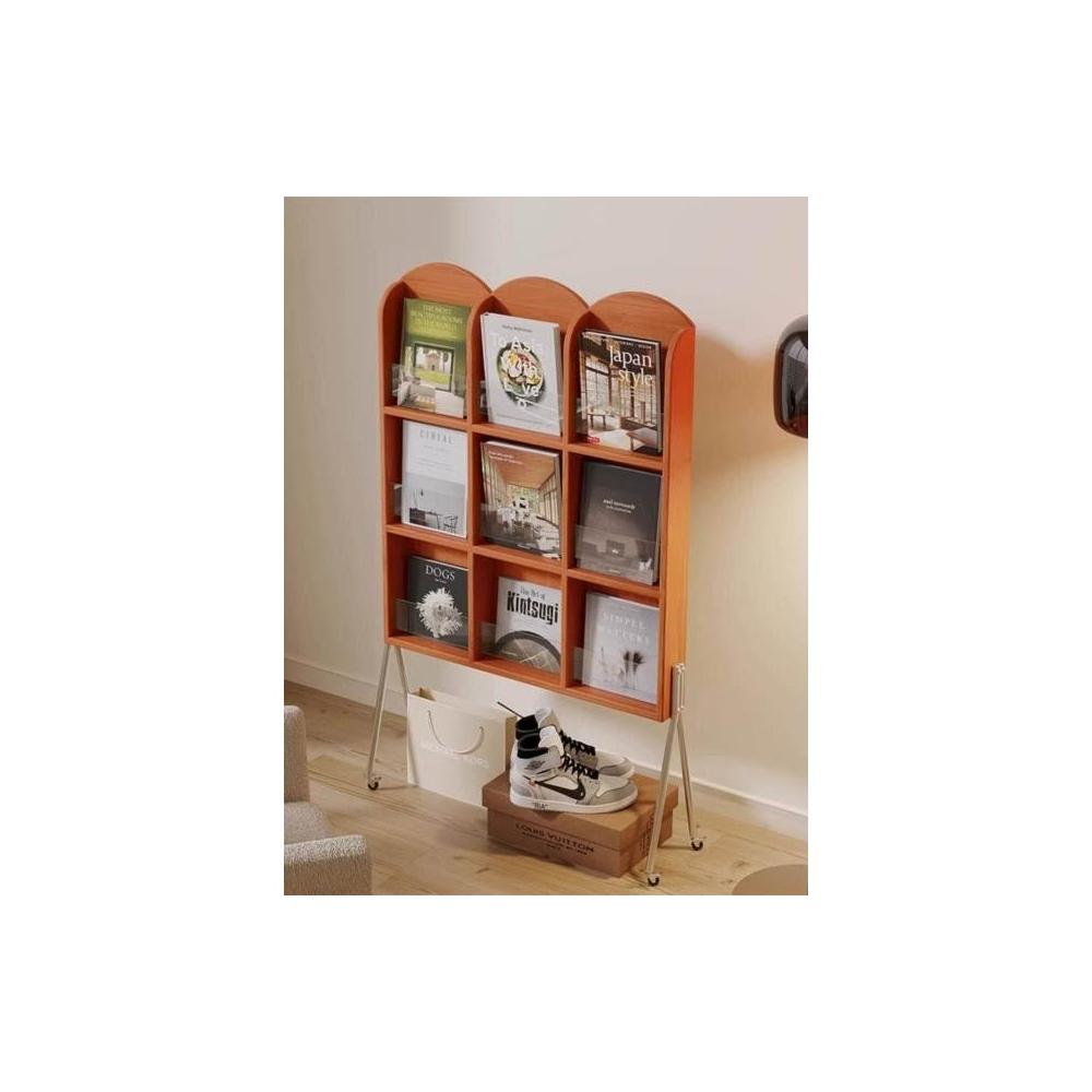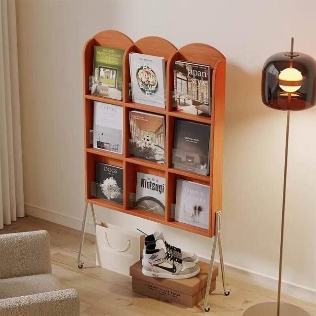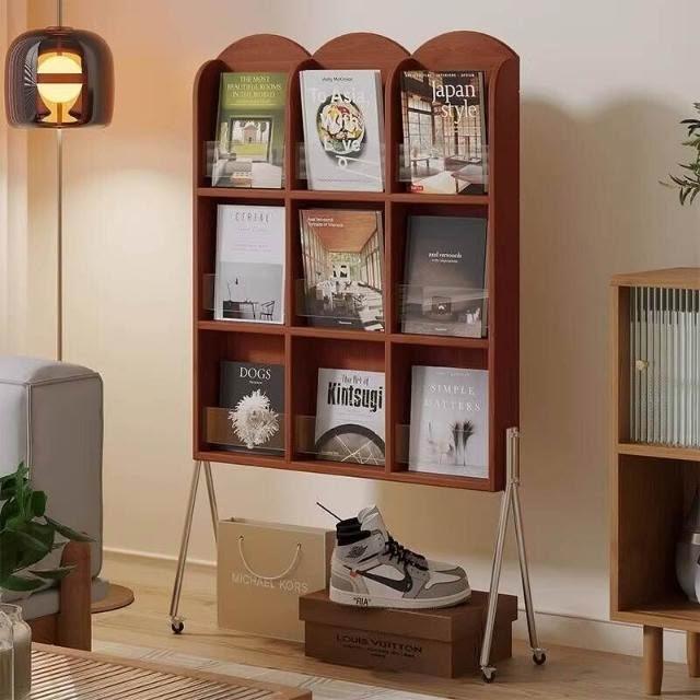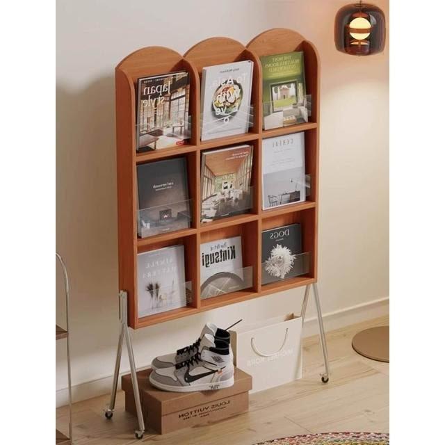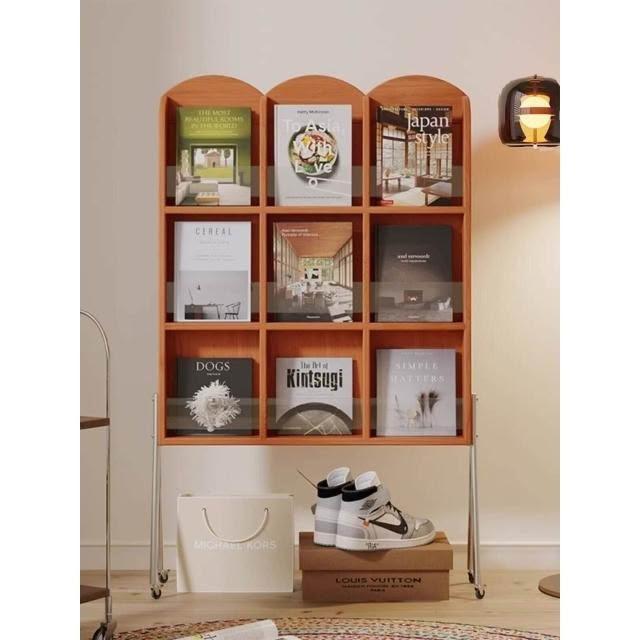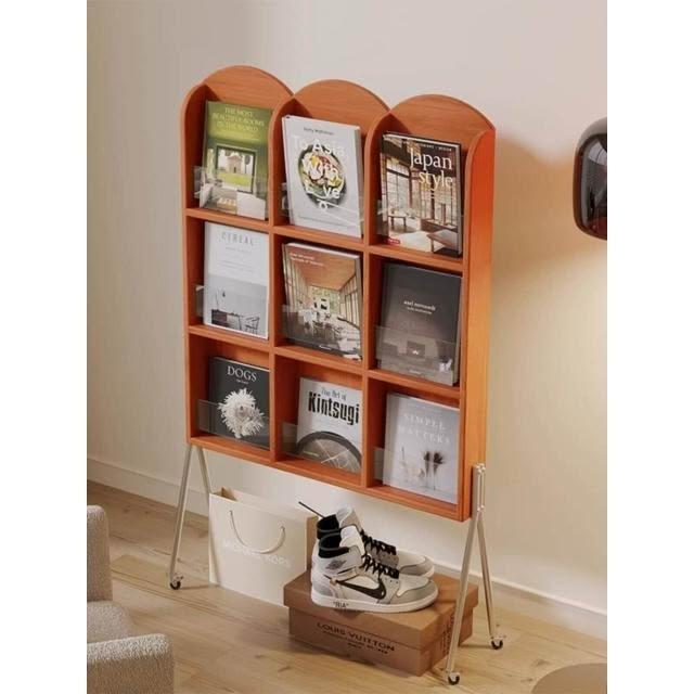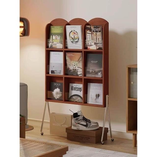 復古實木雜誌架小戶型客廳陽臺閱讀展示架法式簡約報刊收納架書架