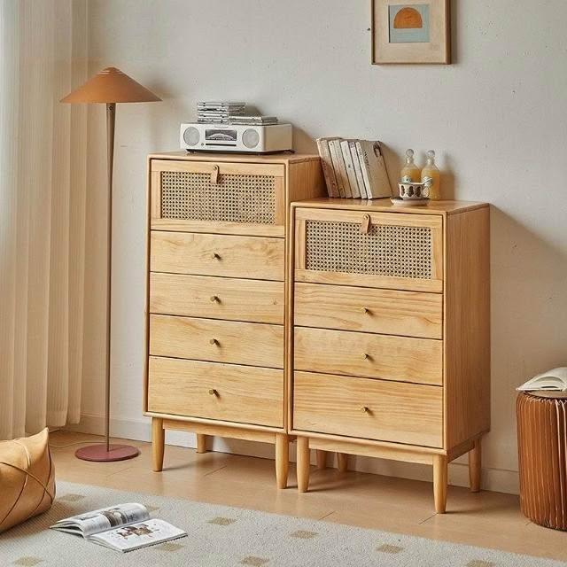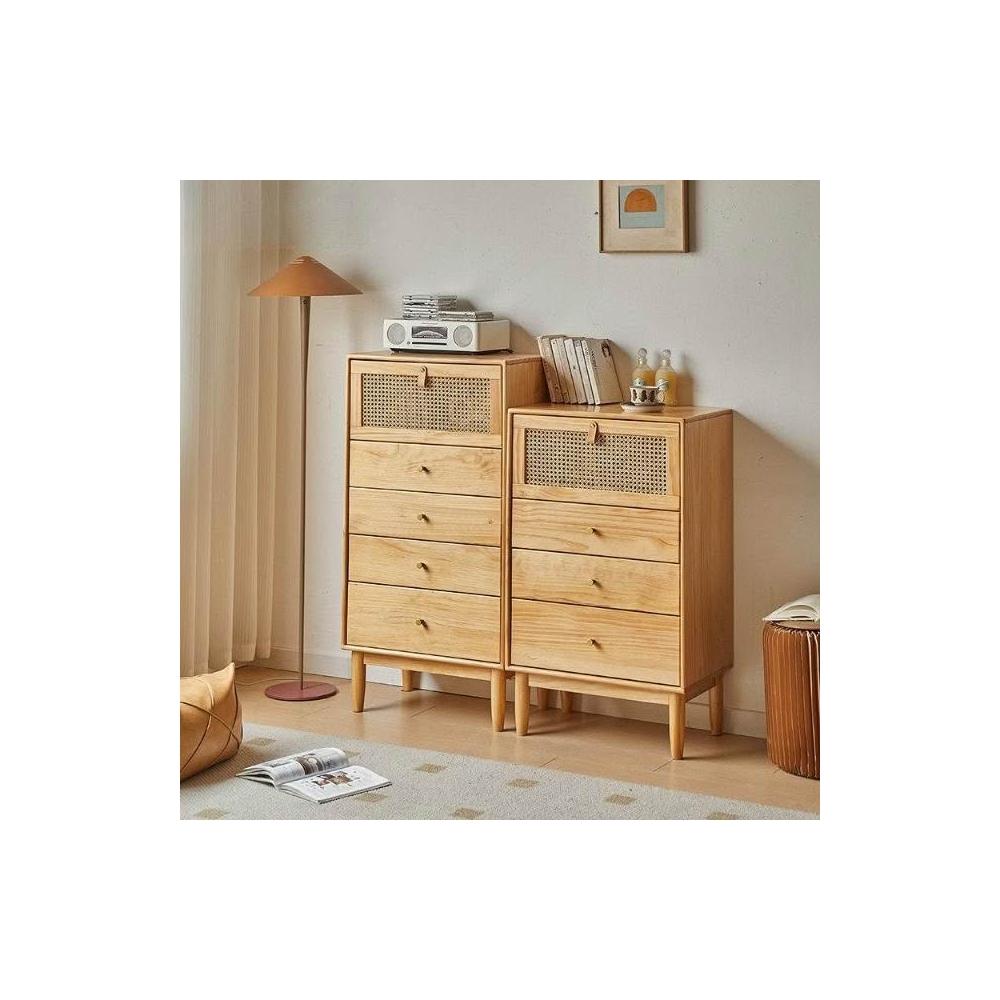 實木藤編鬥櫃客廳靠墻儲物櫃置物櫃日式原木風臥室抽屜式收納櫃