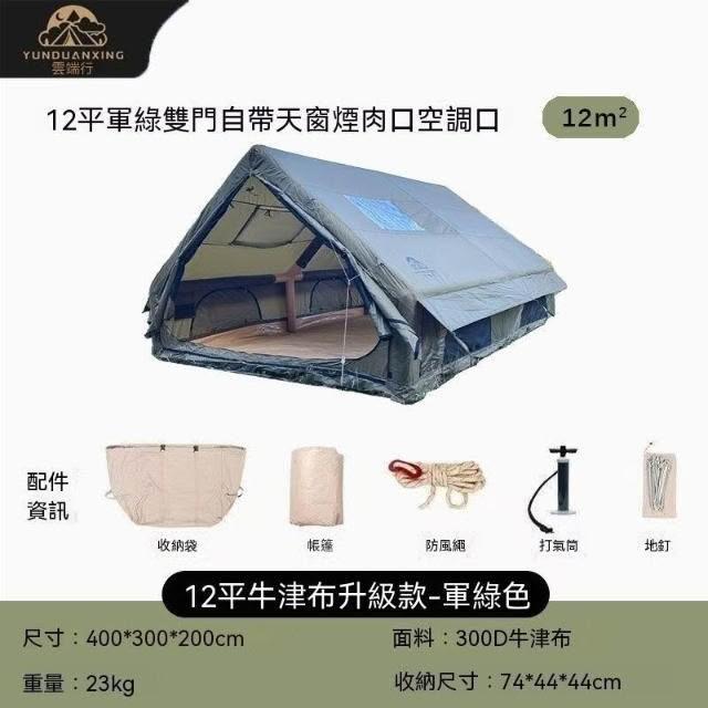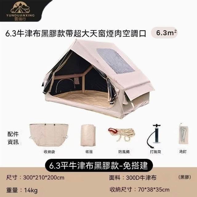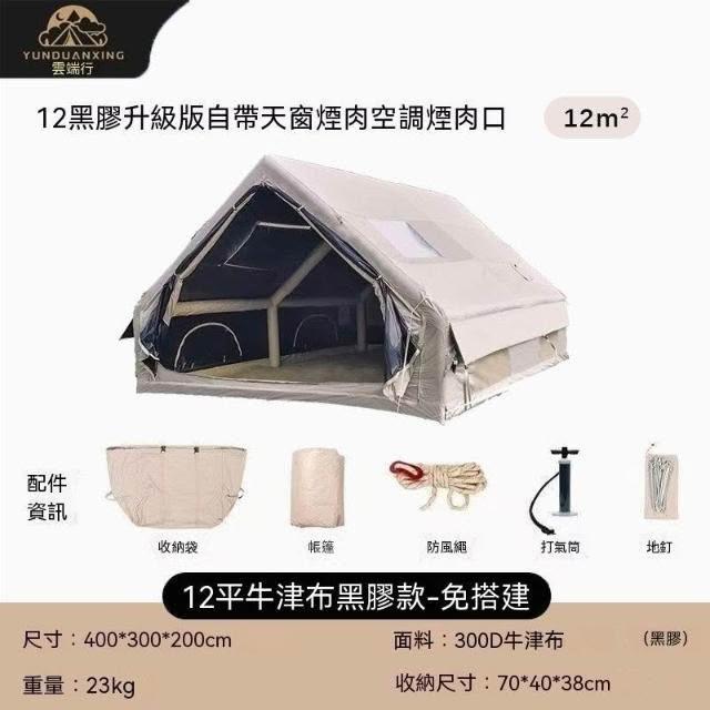 黑膠12平米充氣帳篷防風防雨四季防潮戶外露營便攜免搭建(充氣帳篷/露營帳篷/拋帳/野餐帳篷/遮陽