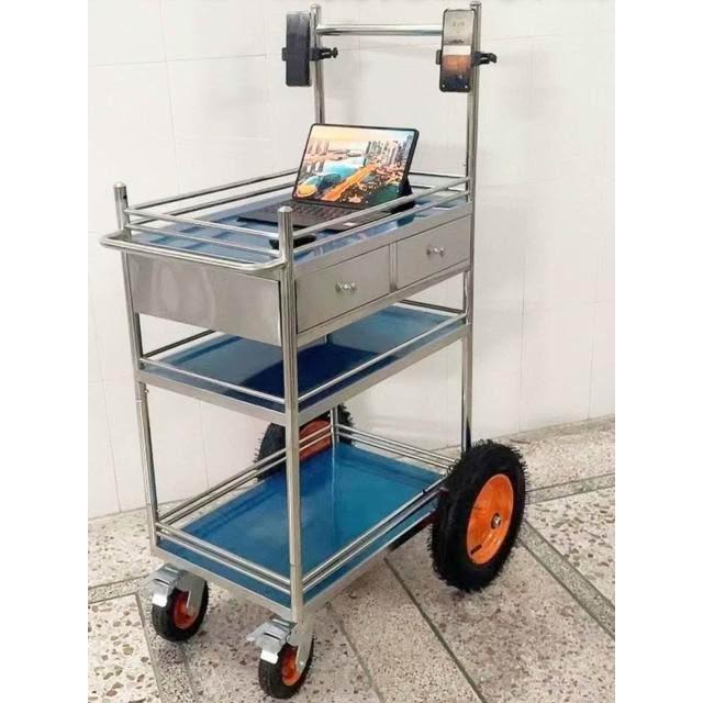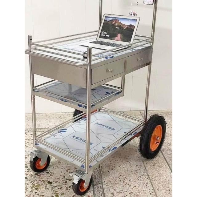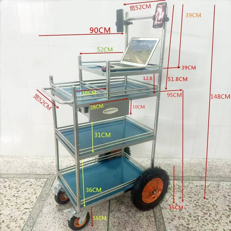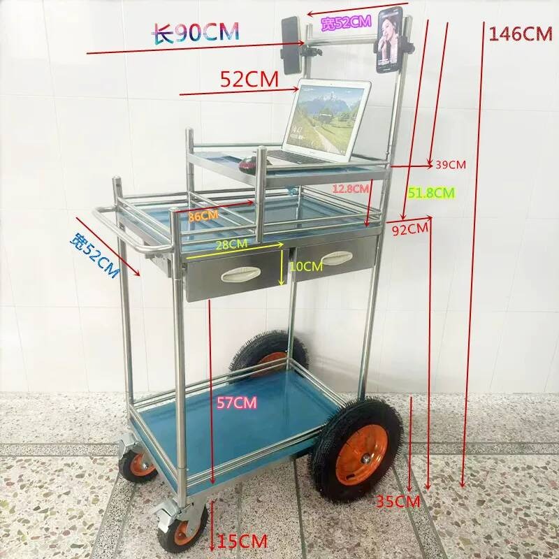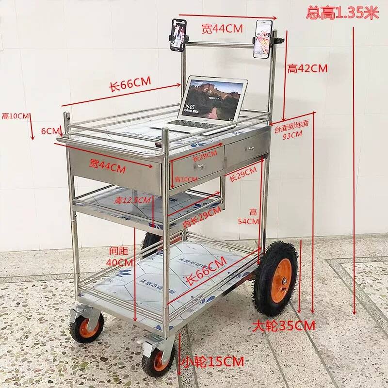 含稅/含運 不銹鋼廣場直播車促銷展示架便攜移動試小吃擺攤小推車地攤車桌子