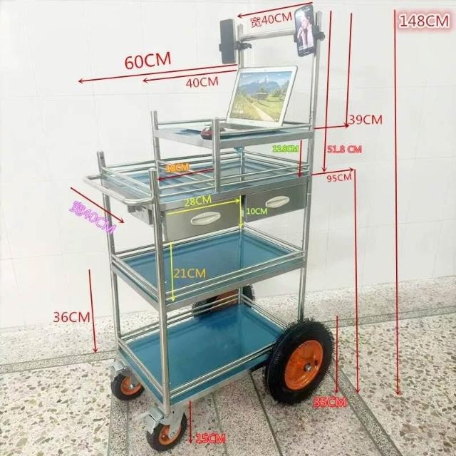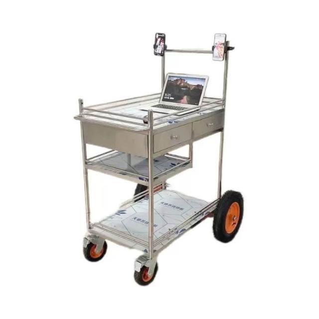 含稅/含運 不銹鋼廣場直播車促銷展示架便攜移動試小吃擺攤小推車地攤車桌子
