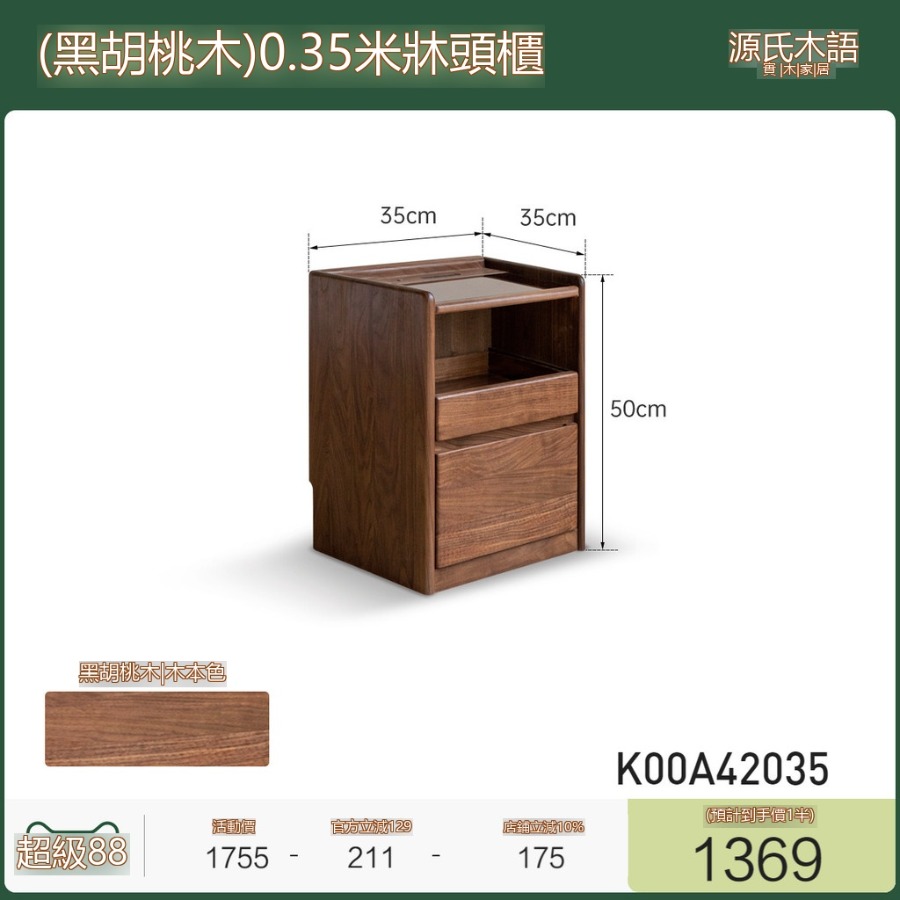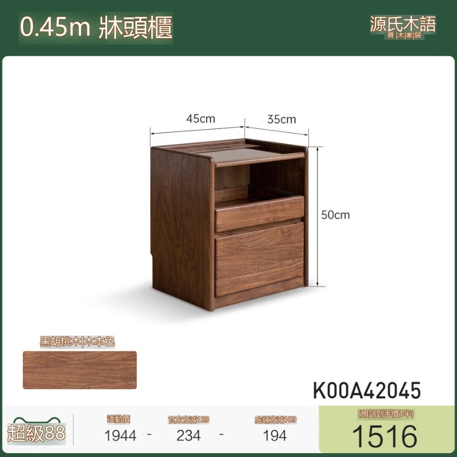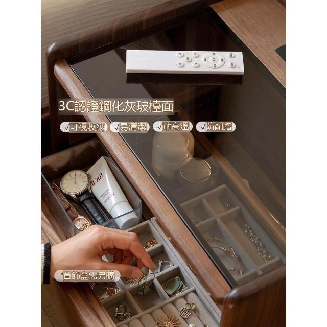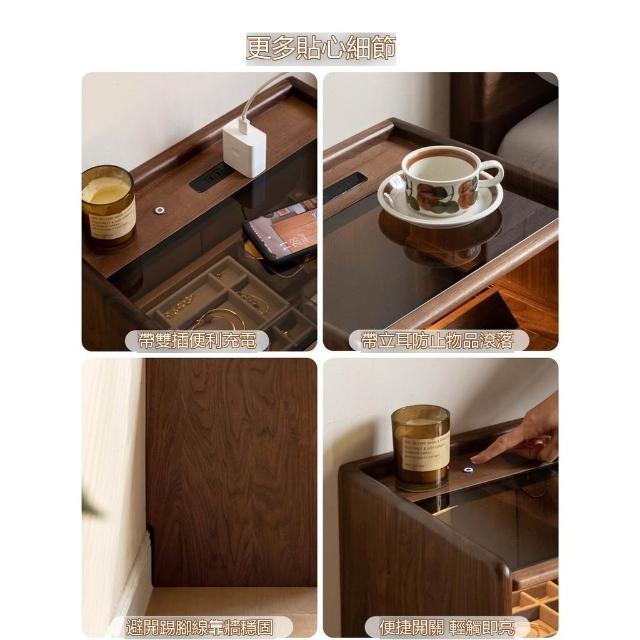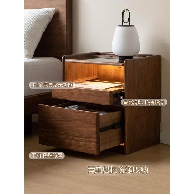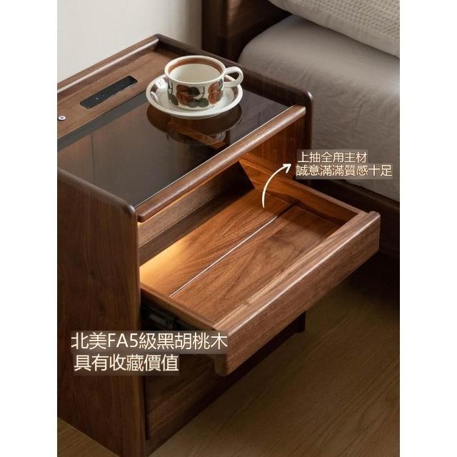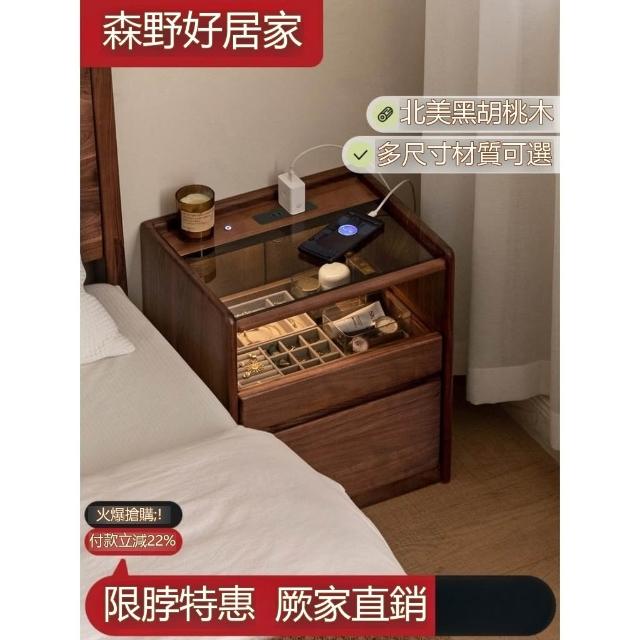 『下殺-可到付』🚀实木床头柜 轻奢风窄櫃 床頭收納櫃 带插座床边小柜子 黑胡桃木床頭櫃 家用抽屉