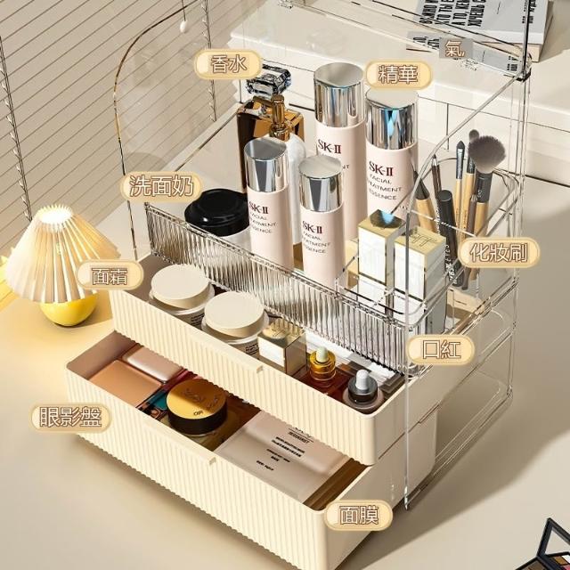 🪐 化妝品收納盒 防塵大容量桌面收納箱 口紅護膚梳妝收納盒 台新款網紅置物架