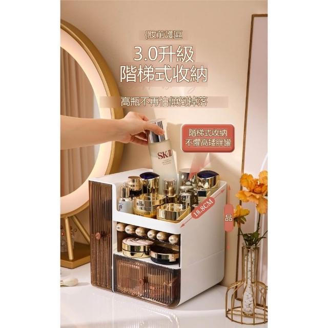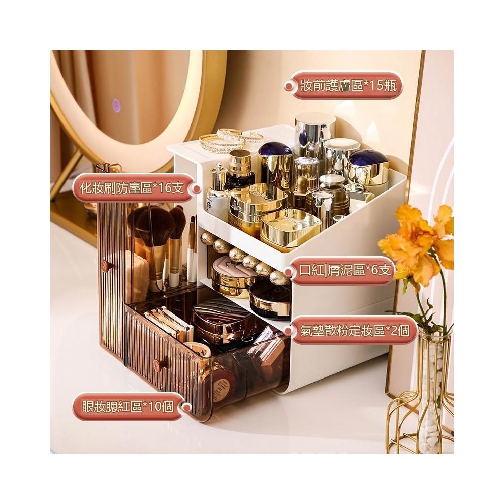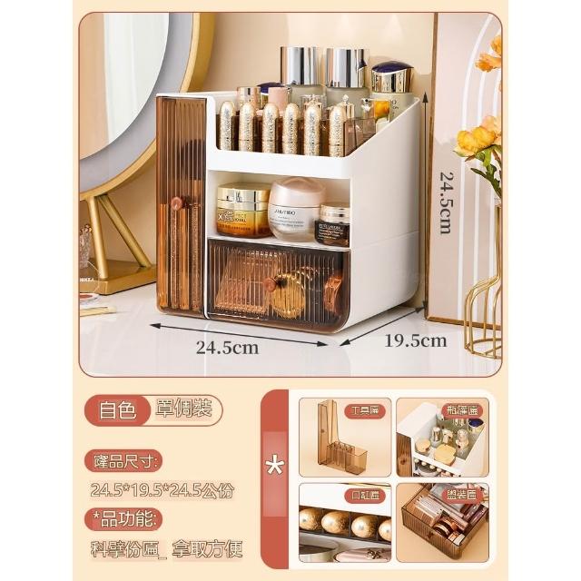 💦 輕奢化妝品置物架 學生桌面整理架子 梳妝台收納盒 口紅護膚品化妝收納盒 化妝品收納盒 透明橙