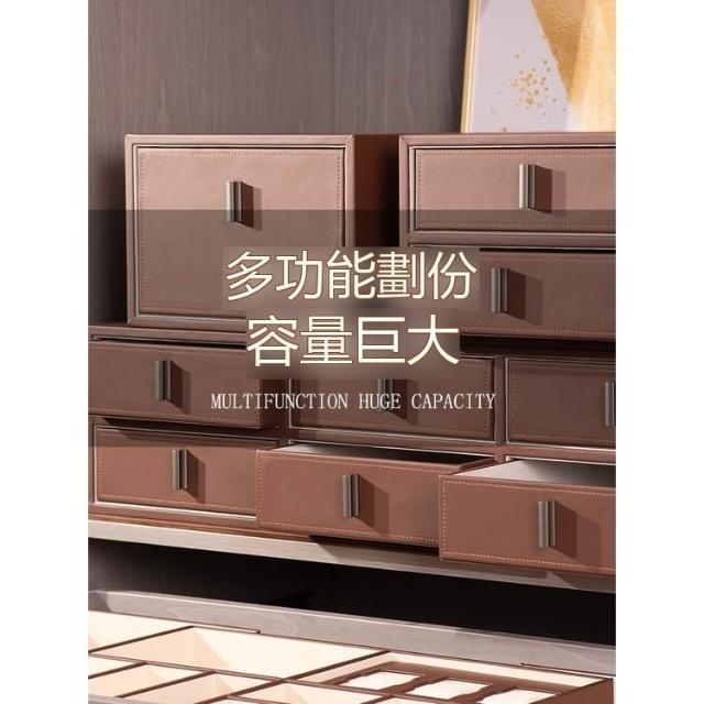 📜開立 抽屜式收納櫃 收納櫃 衣帽間收納盒 桌面收納盒 皮革家用儲物櫃 多層收納儲物櫃 儲物箱