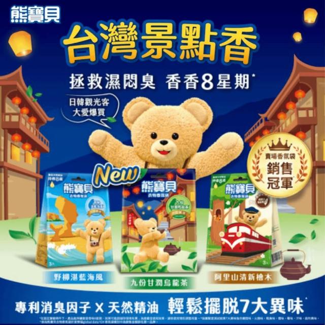 熊寶貝衣物香氛袋 九份甘潤烏龍茶/野柳湛藍海風/竹萃淨味/繽紛花果/薰衣沁林/芬芳香韵/草本清新/清新晨露 3入/盒