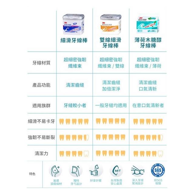 3M牙線棒系列 雙線細滑牙線棒/細滑牙線棒/薄荷木糖醇牙線棒 台灣製