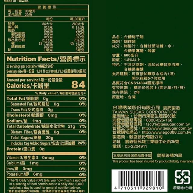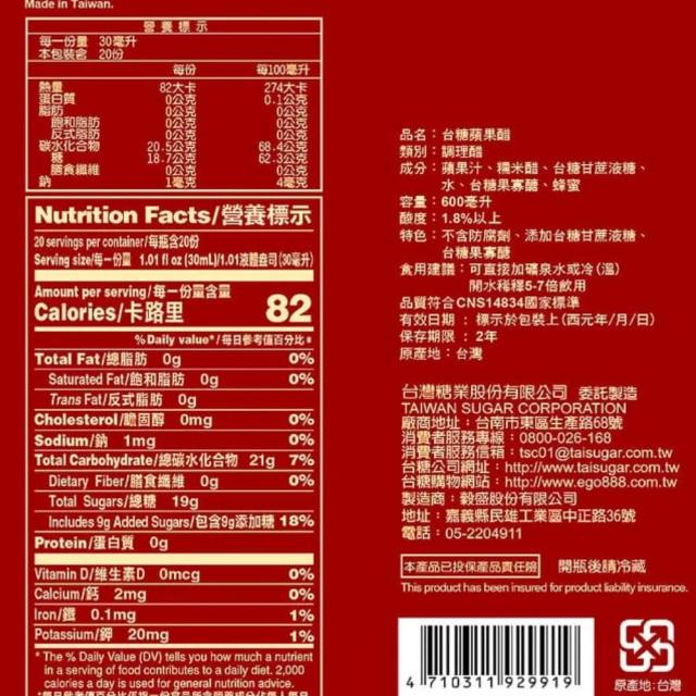 台糖果醋 蘋果醋/梅子醋/蔓越莓醋/鳳梨醋 台灣製 原廠貨 600ml/瓶
