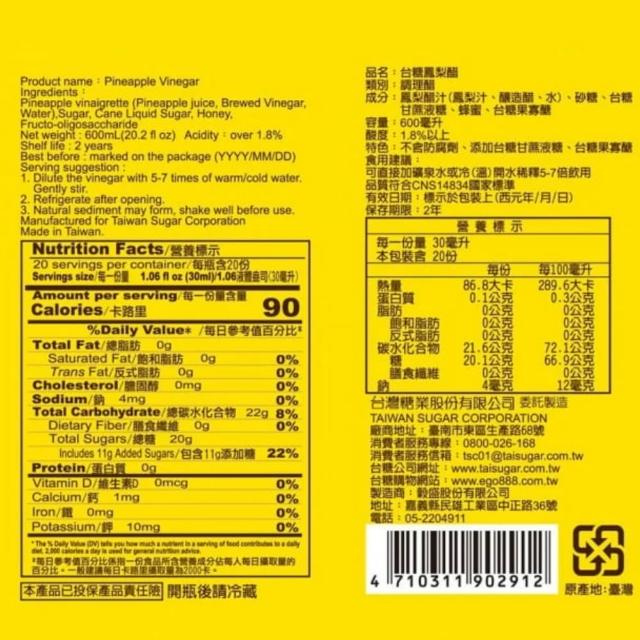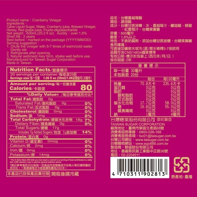 台糖果醋 蘋果醋/梅子醋/蔓越莓醋/鳳梨醋 台灣製 原廠貨 600ml/瓶