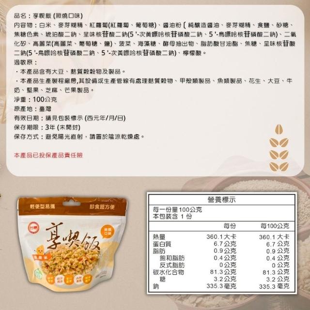 台糖即食米 享喫飯 白飯 乾燥飯 沖泡式即食飯 100g/袋 台灣國產米 冷熱皆可沖泡 登山露營 防災備糧