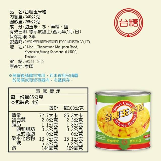 台糖罐頭 玉米粒罐頭 玉米罐頭 易開罐 開罐即食 不添加防腐劑 340g/罐 原廠公司貨