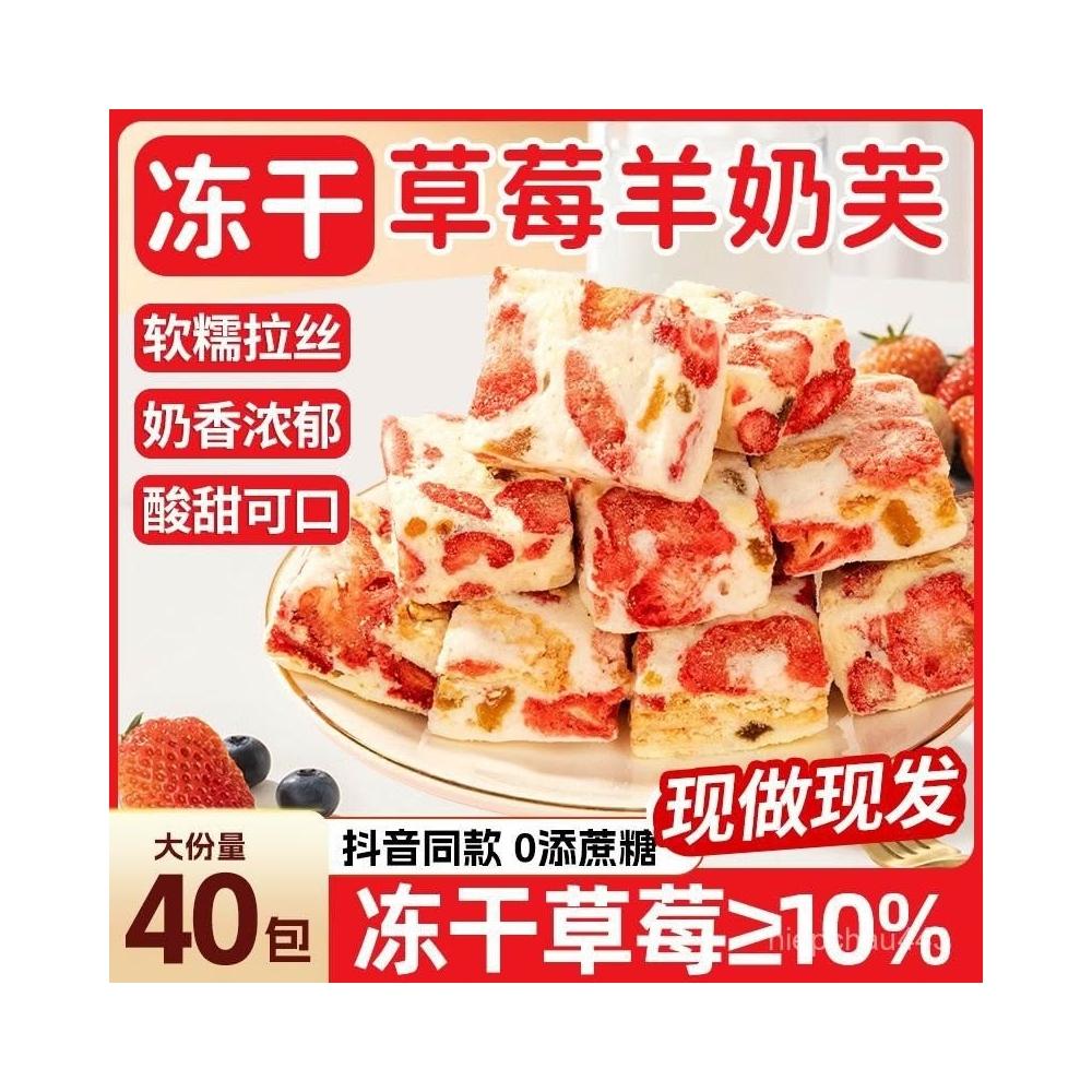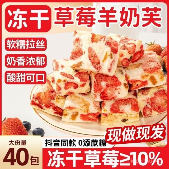 小圓滿凍幹草莓羊奶芙手工拉絲雪花酥痠甜小喫糕點心學生零食