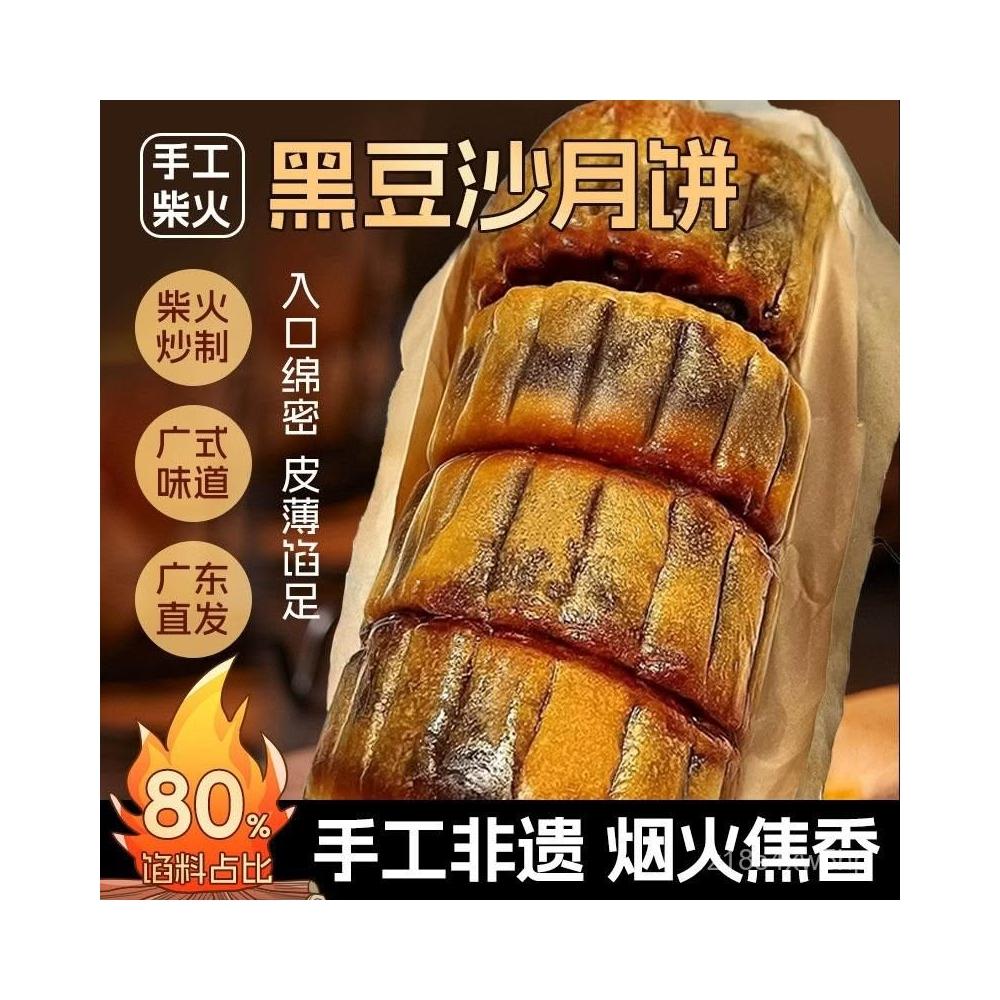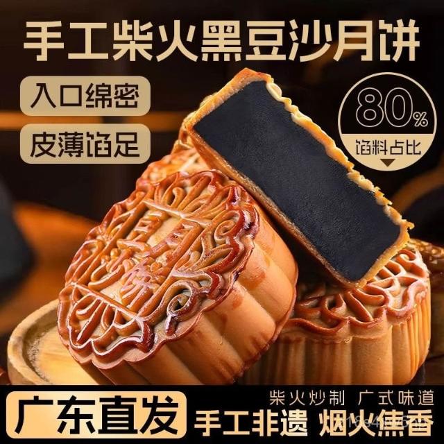 小圓滿手工柴火黑豆沙沙月餅月餅大個廣式黑豆零食糕點茶點傳統批髮