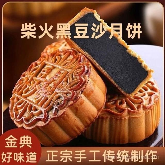 小圓滿正宗柴火黑豆沙月餅點心糕點老式中秋月餅廣式手工傳統月餅零食