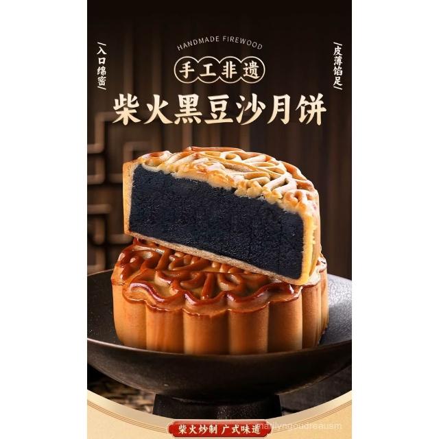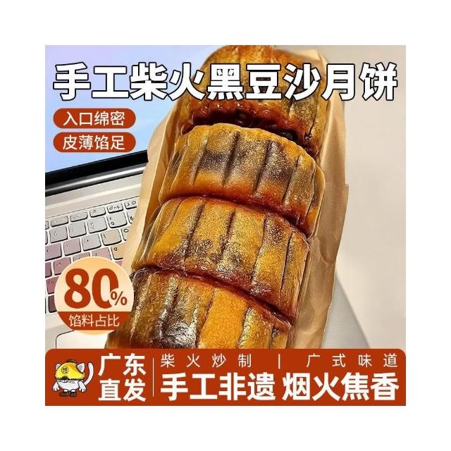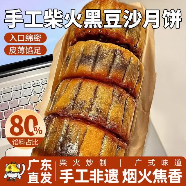 小圓滿柴火黑豆沙月餅手工筒裝陳皮豆沙傳統老式廣式月餅特産小喫零食品